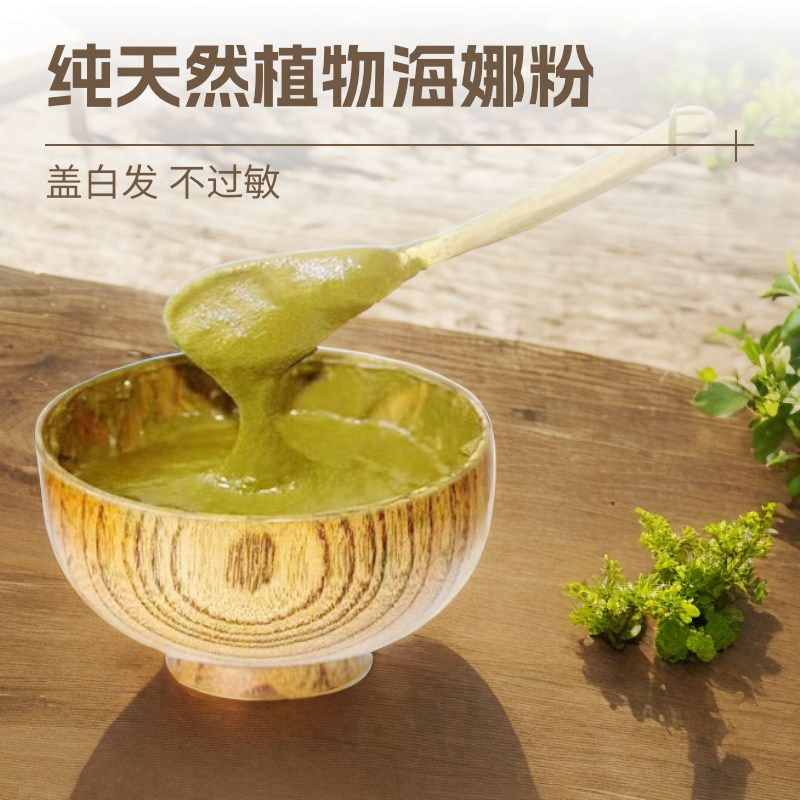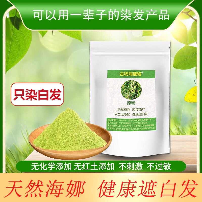 淘宝印度古物海娜粉200g纯植物遮盖白发染发剂不过敏天然染发膏靛蓝粉