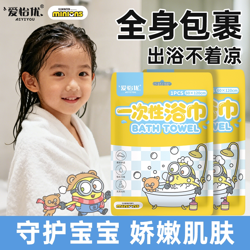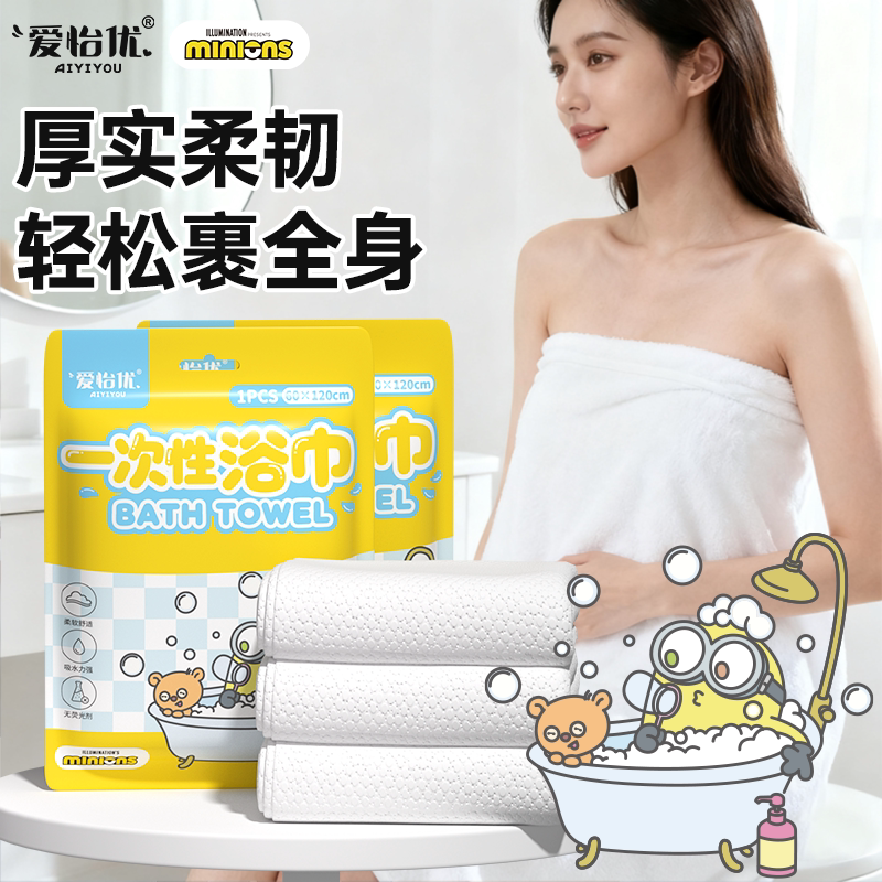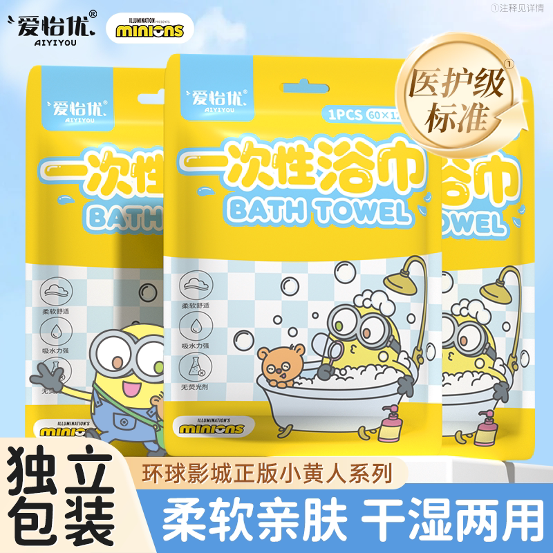 淘宝20条爱怡优一次性浴巾小黄人旅行装独立包装加厚加大便携出差