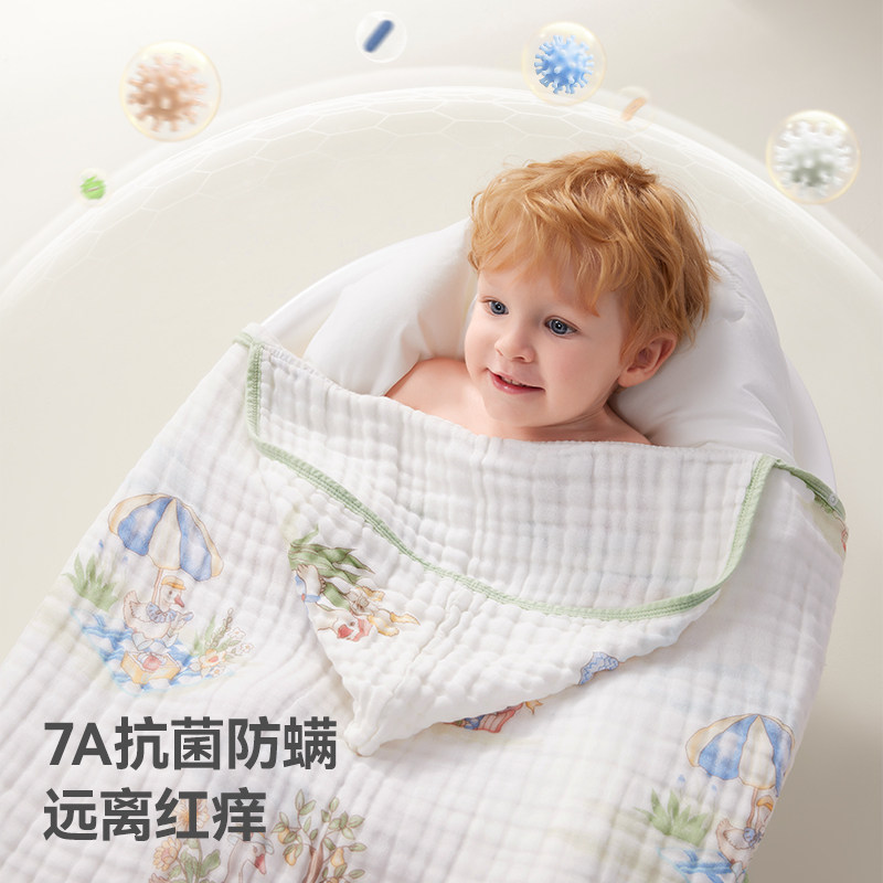 天猫贝肽斯婴儿纱布浴巾纯棉宝宝浴巾超软速吸洗澡包被裹巾秋季大尺寸