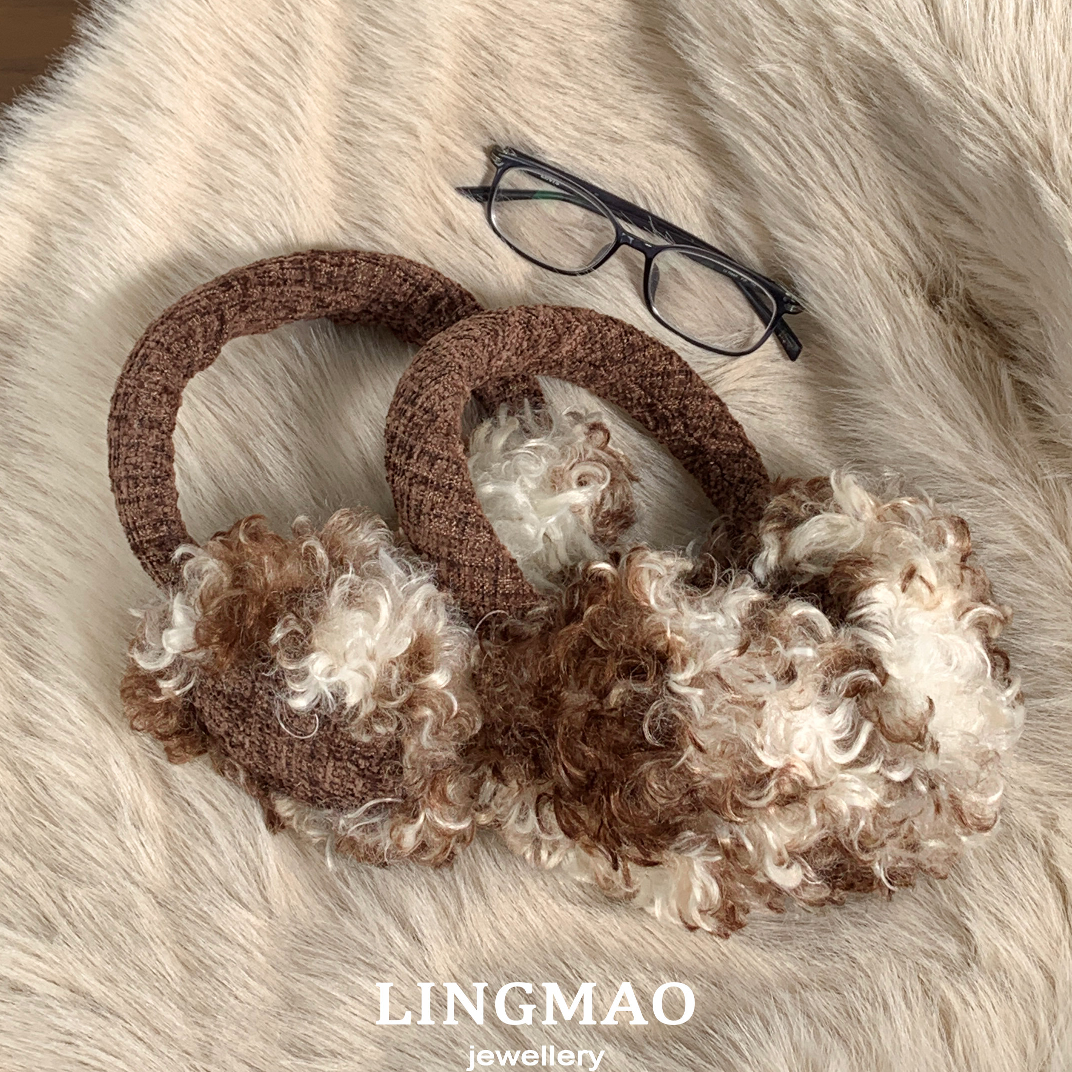 淘宝德文卷毛咖色千鸟格纹耳罩复古风加厚毛绒保暖冬季防风护耳套捂子