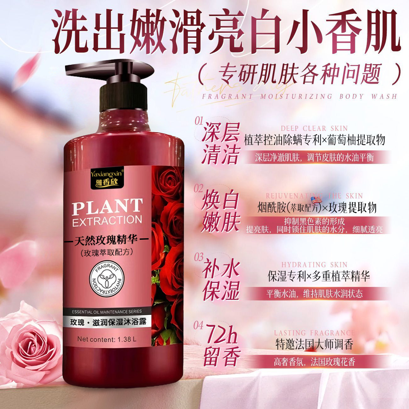 淘宝玫瑰花香沐浴露持久留香72小时品牌正品官方男女通用洗澡大瓶浴液