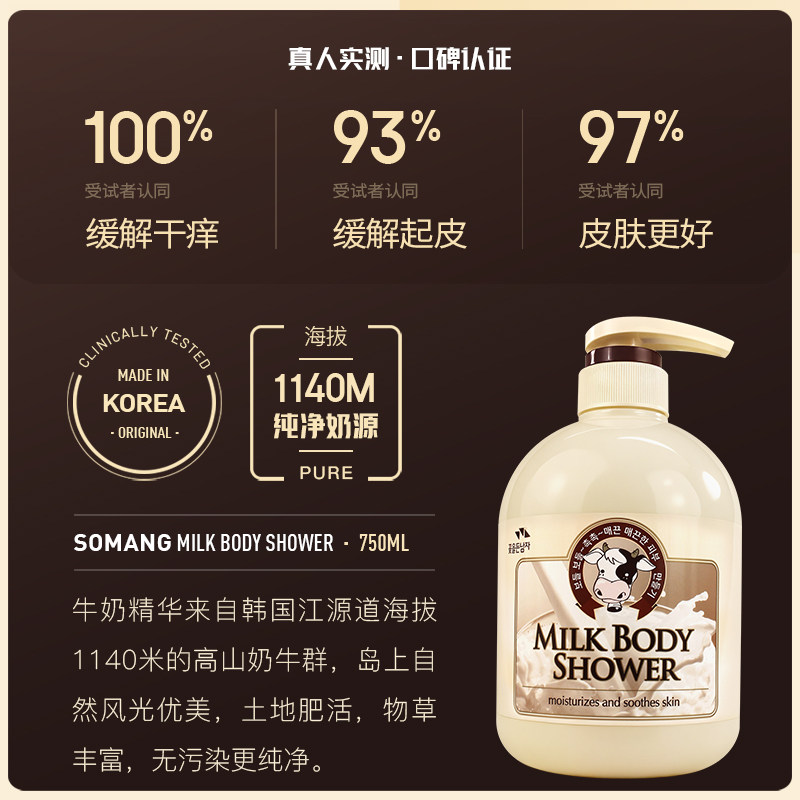 淘宝韩国所望牛奶沐浴露清洁保湿男女通用沐浴乳家用洗澡嫩肤补水正品