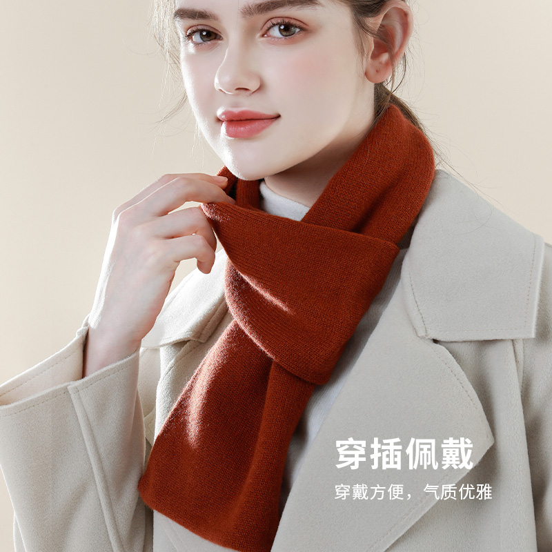 淘韩版简约短款毛线小围巾女秋冬季保暖交叉围脖纯色针织护脖防寒潮