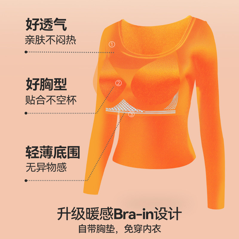天猫内茵保暖内衣女套装带胸垫无痕冬季薄款发热打底衫美雅碧秋衣秋裤