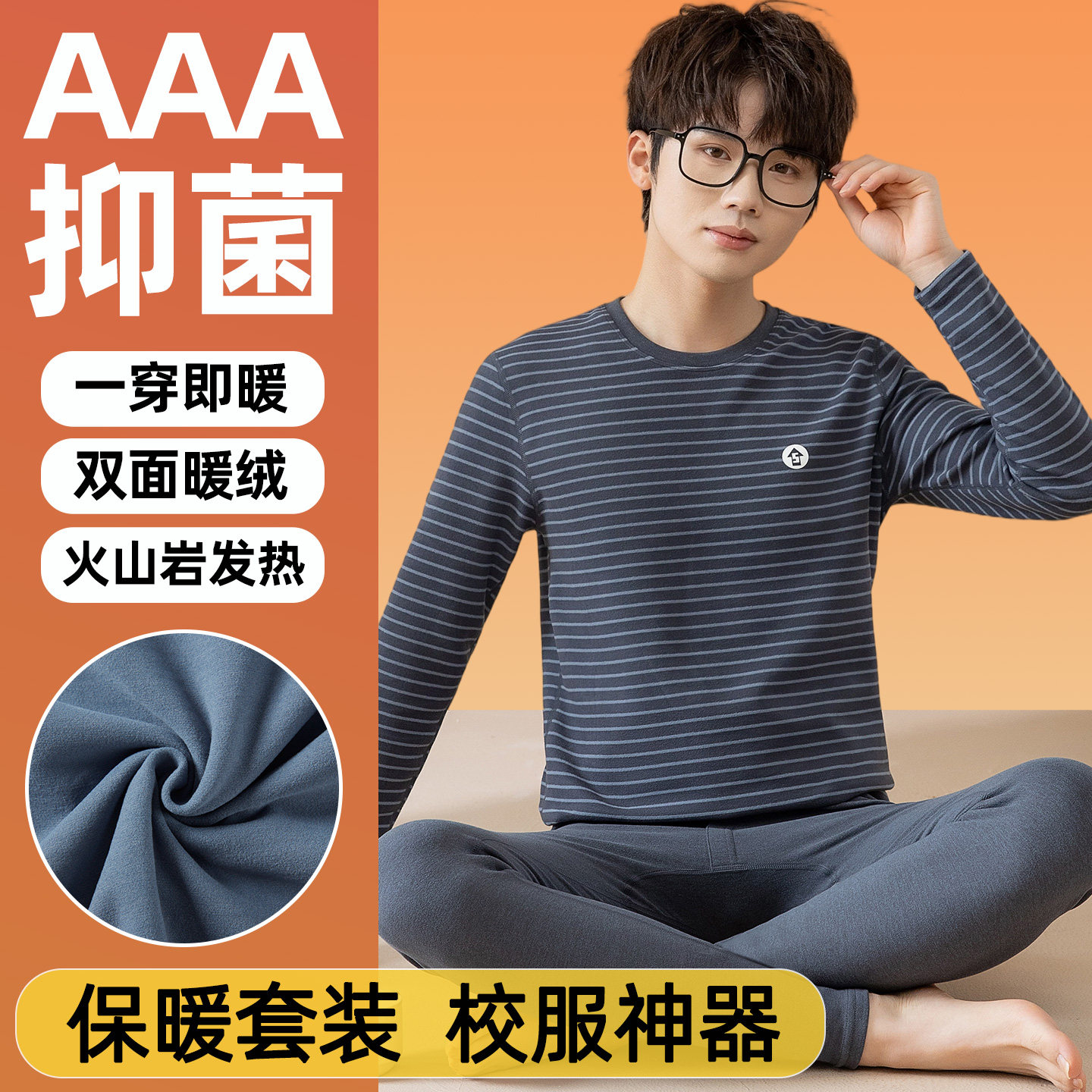 淘宝高中生青少年秋衣秋裤套装男初中生纯棉a类保暖内衣大学生棉毛衫