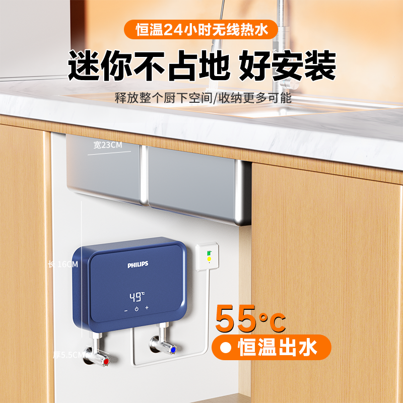 天猫飞利浦小厨宝洗碗热水器即热式厨房卫生间台下小型速热式家用电热