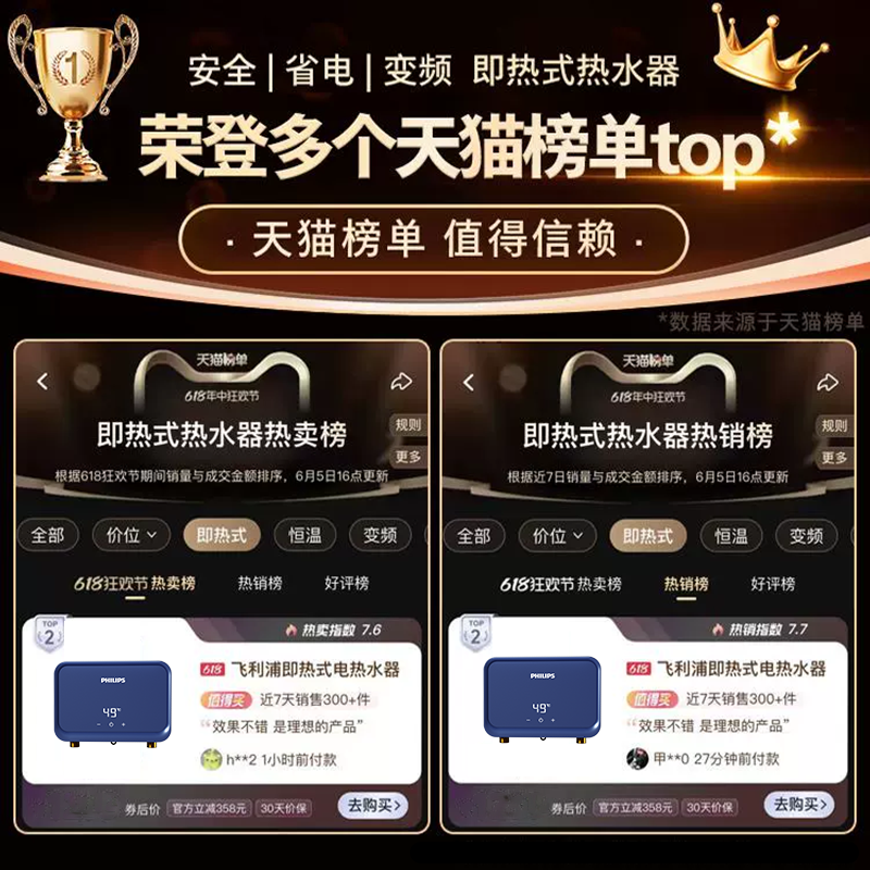 天飞利浦即热式电热水器家用小型速热变频恒温洗澡卫生间免储水神器