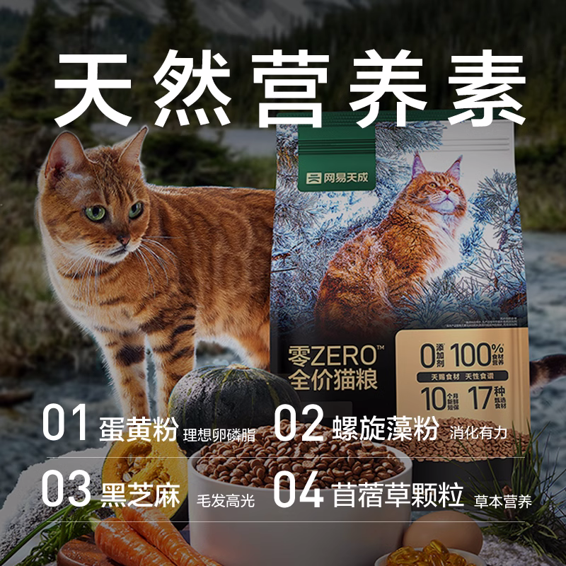 天猫网易天成ZERO全价猫粮 膳食全阶段幼猫成猫鲜肉天然配方网易严选