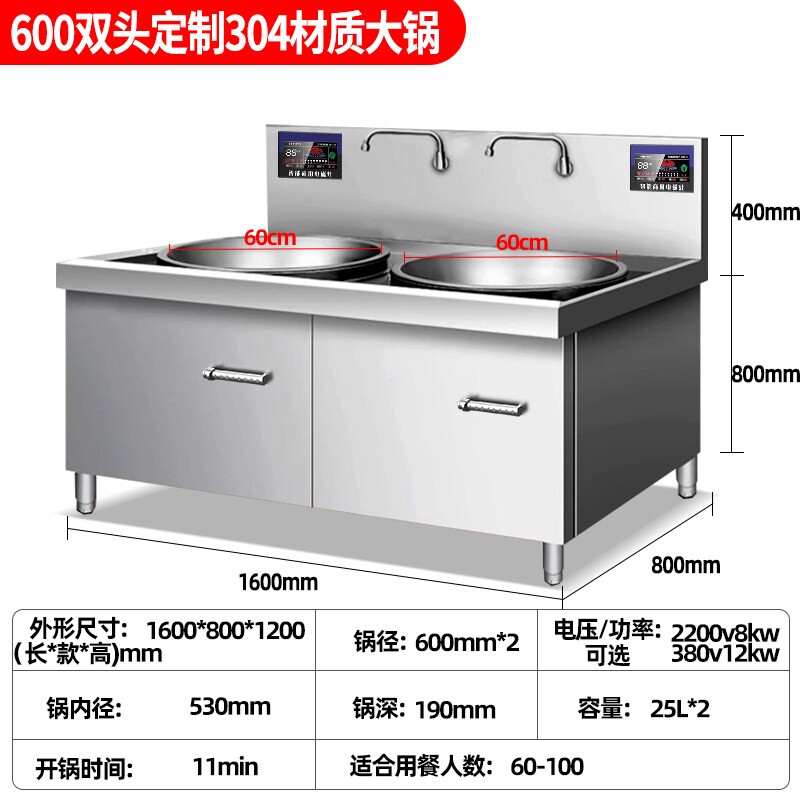 九鼎王焰商用电磁炉大锅灶是一款专为餐饮后厨及工业厨房设计的高性能电磁炒炉,额定功率高达15KW,具备强劲火力输出,可快速加热,满足大批量烹饪需求。采用大功率凹面电磁线圈设计,聚能高效,加热均匀,适配多种圆底炒锅,特别适合中式爆炒、炖煮等烹饪方式。设备具备多档火力调节、智能温控及定时功能,操作简便,安全可靠。整机结构坚固,耐高温、防腐蚀,适合高强度使用环境。相比传统燃气灶,电磁炉节能环保、无明火、低噪音,显著提升厨房安全与能效水平,是酒楼、食堂、工厂厨房的理想选择。