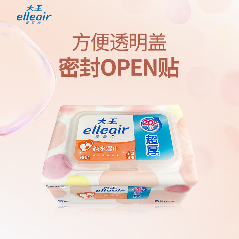 【百补】大王Elleair马卡龙湿巾,专为婴幼儿娇嫩肌肤设计,采用100%纯水配方,无酒精、无香精、无荧光剂,温和亲肤,手口均可安心使用。每包60抽,共12包装,大容量更耐用,满足家庭日常清洁需求。湿巾质地柔软细腻,水分充足,轻松擦拭污渍的同时呵护宝宝肌肤。马卡龙色系包装清新可爱,便于携带与收纳。通过多项安全检测,品质值得信赖。无论是居家护理、外出旅行,还是宝宝日常清洁,都是贴心之选。选择【百补】大王Elleair,让洁净更安心,守护宝宝每一刻的纯净与健康。