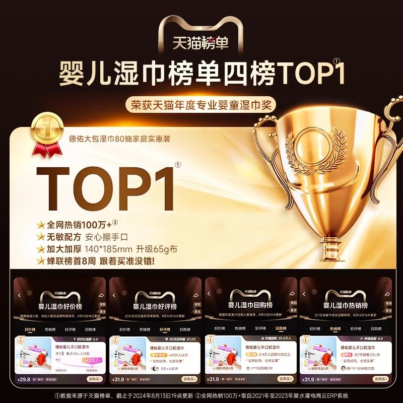 天猫德佑湿巾纸新生婴儿手口专用屁宝宝幼儿童湿纸巾家用实惠装大包