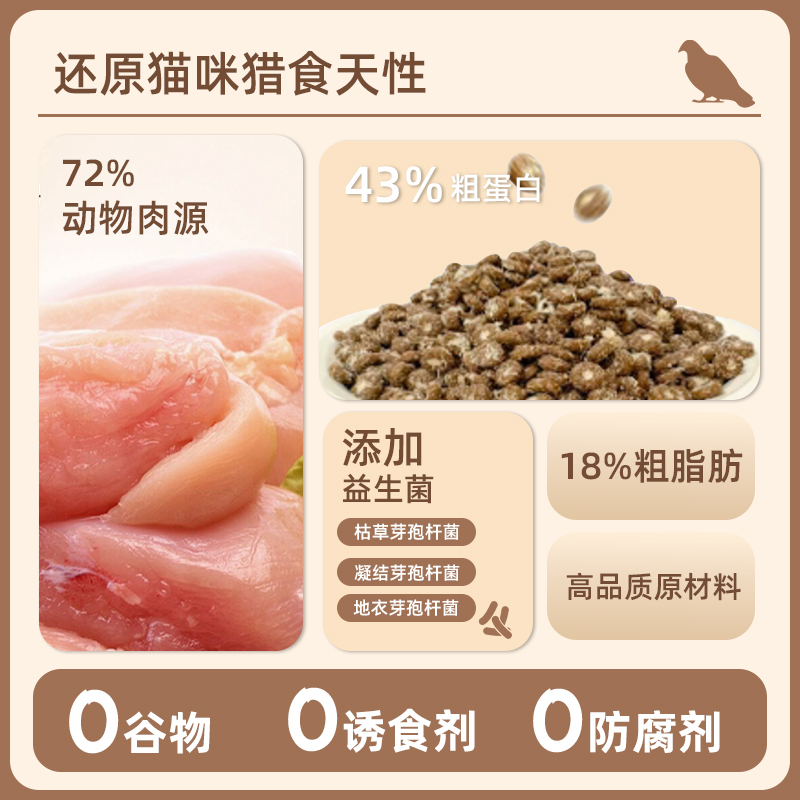 尾巴生活低温烘焙猫粮酶解鲜肉无谷成猫幼猫用全价鸡肉天然旗舰店