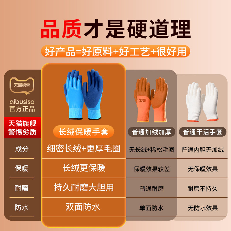 天猫劳保手套冬季工作耐磨橡胶防水秋冬加绒防寒干活冬天加厚保暖耐用