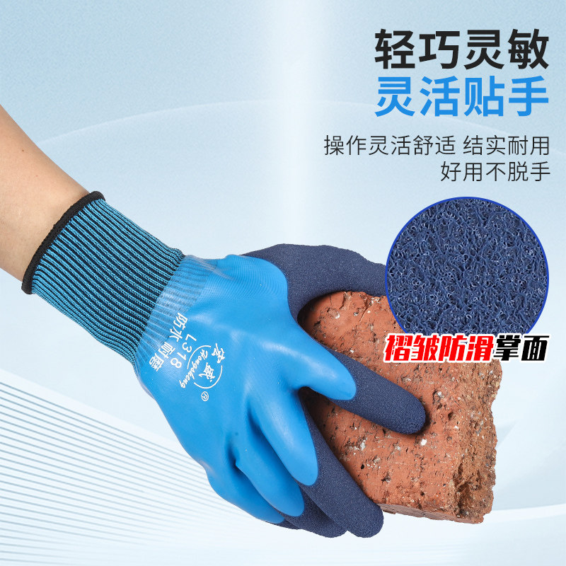 全胶双层浸胶劳保手套采用高品质天然橡胶经双层浸胶工艺制成,具备卓越的耐磨、耐撕裂性能,适用于多种高强度作业环境。其全胶设计提供全面防护,有效防水、防油,避免手部接触有害物质,保障作业安全。手套表面经特殊防滑纹理处理,抓握稳固,即使在潮湿或油污条件下也能保持良好操作性。内层柔软舒适,贴合手型,长时间佩戴不易疲劳。广泛应用于建筑、制造、农业、汽修、清洁等行业,是劳动者日常作业的理想防护用品。结实耐用,性价比高,为双手提供全天候可靠保护。