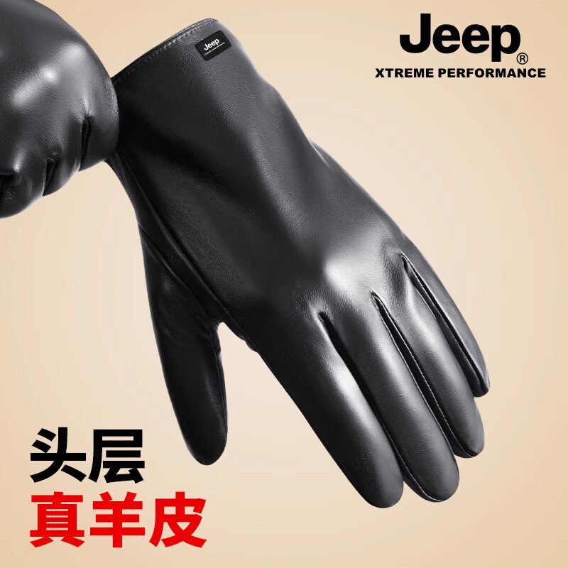 天猫jeep吉普男士绵羊皮手套冬季骑车保暖电动车真皮防风骑行皮手套男