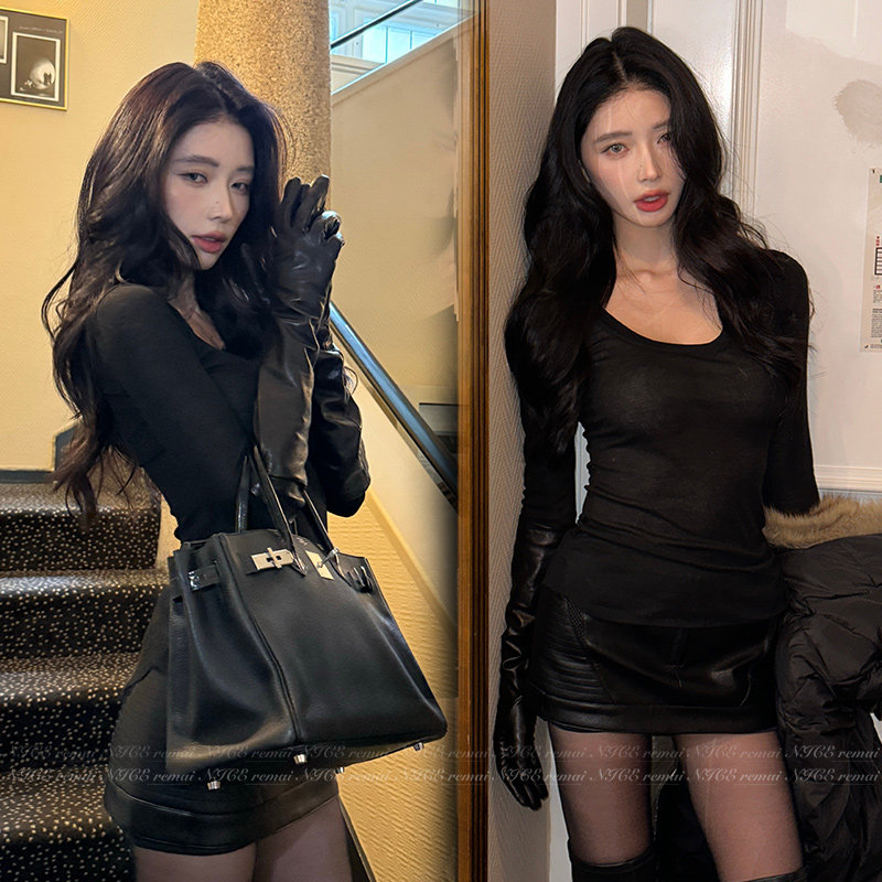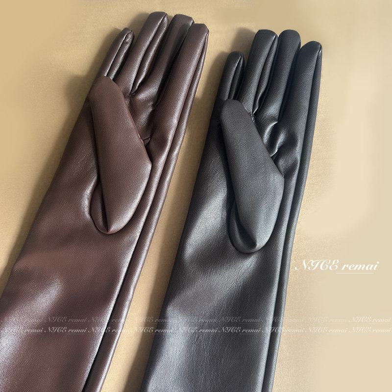 淘宝黑色软pu皮长手套明星网红杂志写真拍照高级感千金名媛风时髦配饰
