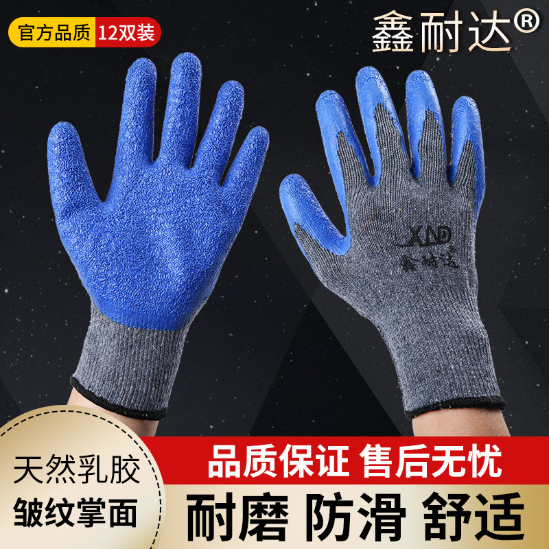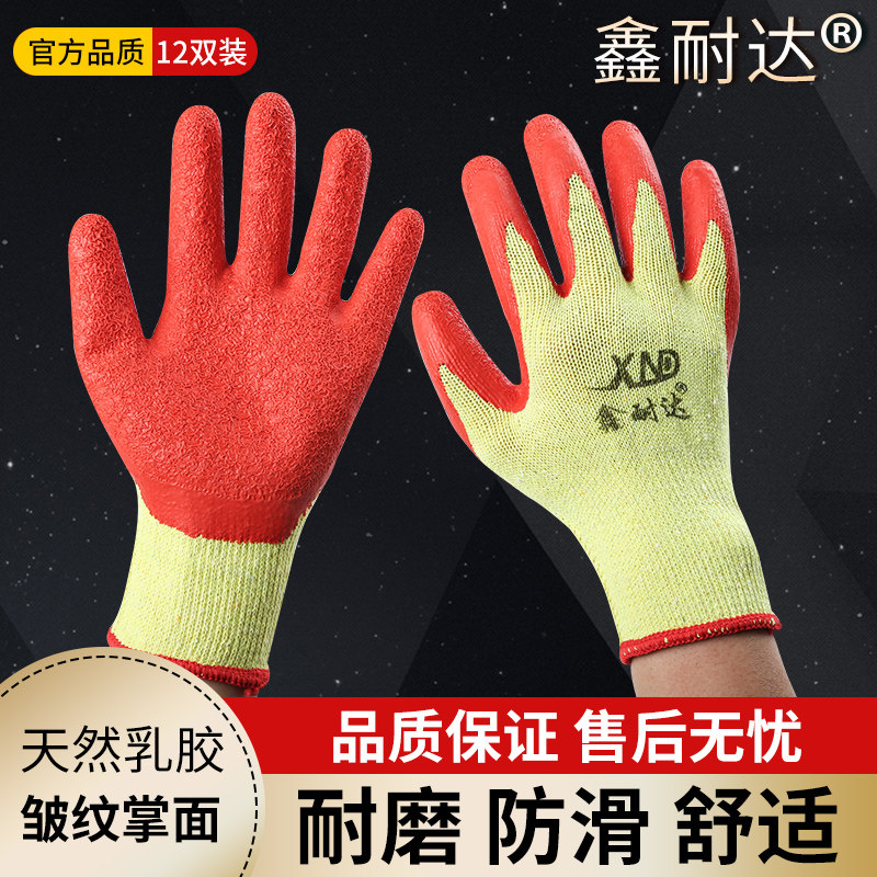 淘手套工作劳保耐磨橡胶工地干活加厚耐用乳胶防滑防水劳动防护手套