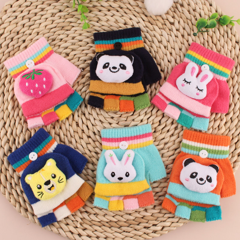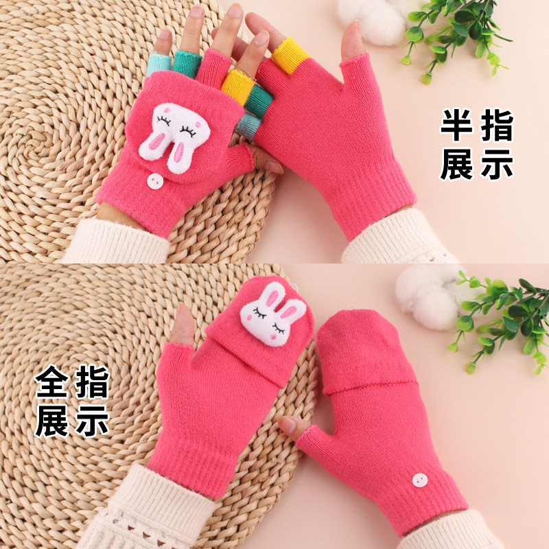 淘宝儿童手套冬宝宝女小孩男童保暖可爱半指翻盖幼儿学生写字大童两用