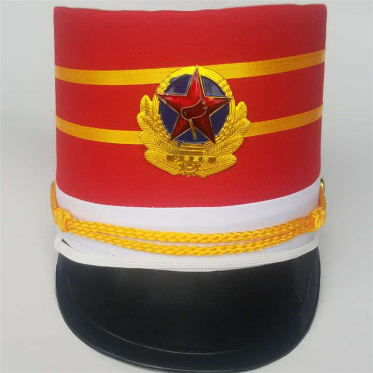 淘宝儿童鼓号队服装帽子羽毛高帽男女升旗手服装帽子腰带手套服装配饰