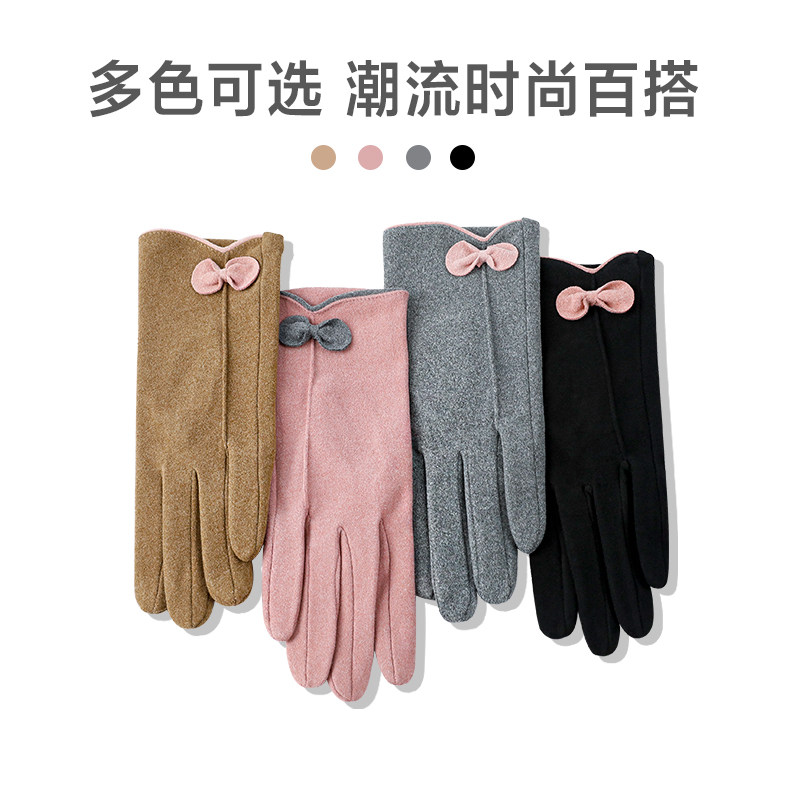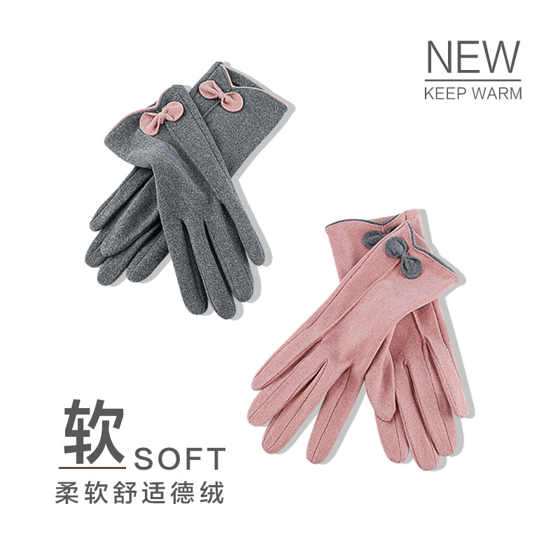 天猫冬季手套女骑行骑车防风保暖触屏德绒手套韩版可爱春秋薄款全指