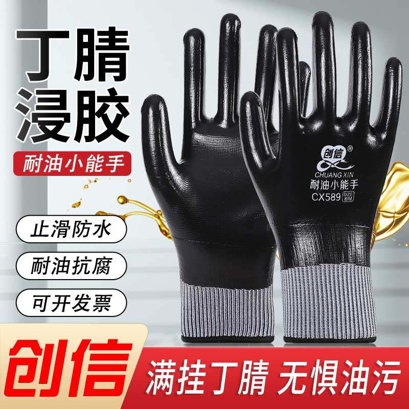 创信劳保手套是一款专为工业作业设计的高性能防护手套,采用优质丁腈橡胶全浸胶工艺,具备出色的耐磨、耐油和防滑性能。手套表面全胶覆盖,有效防止油污、化学品渗透,同时具备优异的防水功能,适用于机械维修、汽车制造、建筑施工等潮湿或油污环境。其贴合手型的设计提供灵活操作感,掌心加厚处理增强耐用性,长时间使用不易破损。无论是抓握工具还是接触尖锐物体,都能提供可靠保护。创信劳保手套以高品质材料和精湛工艺,保障劳动者手部安全,是工业作业中值得信赖的防护装备。