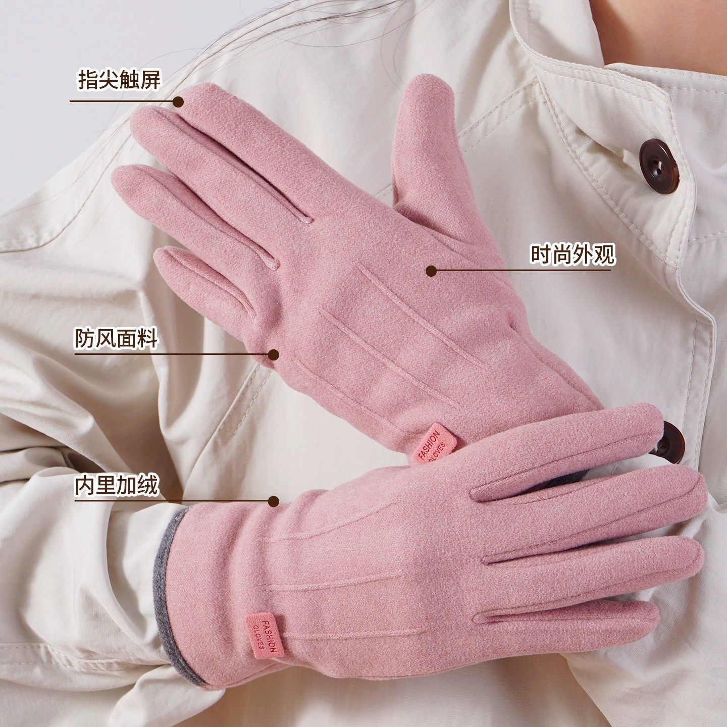 天冬季手套女骑行骑车防风保暖触屏德绒手套韩版可爱春秋薄款全指