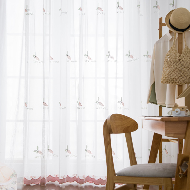 淘宝小清新免打孔窗纱儿童房卧室男女孩窗帘阳台飘窗透光纱帘简易安装