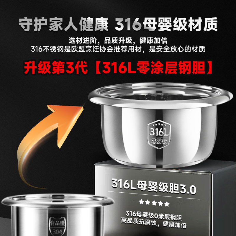 三角牌316不锈钢电饭锅,正品保障,经典老式设计,专为2-4人家庭打造。采用食品级316不锈钢内胆,耐腐蚀、耐高温,健康安全,长久使用不易生锈。4L-6L多容量可选,满足日常煮饭、煲汤、炖粥、蒸菜等多种需求,真正实现一锅多用。智能控温系统,米饭松软香甜,粥汤浓稠营养。简约操作面板,老人也能轻松上手。加厚锅体设计,受热均匀,节能省电。三角牌作为国产老牌电器,品质可靠,耐用性强,是家庭厨房的理想之选,兼顾实用与性价比,让每一餐都充满家的味道。