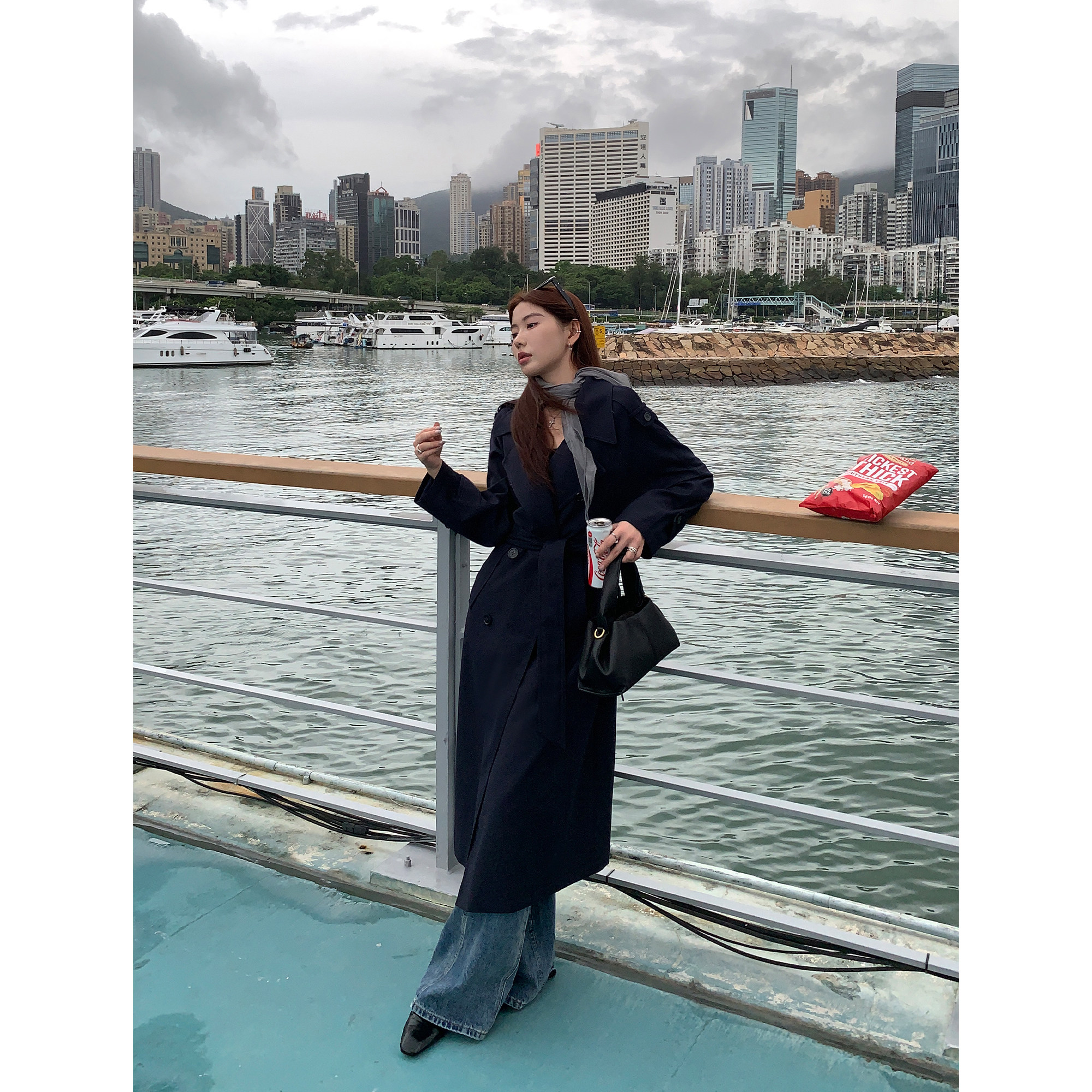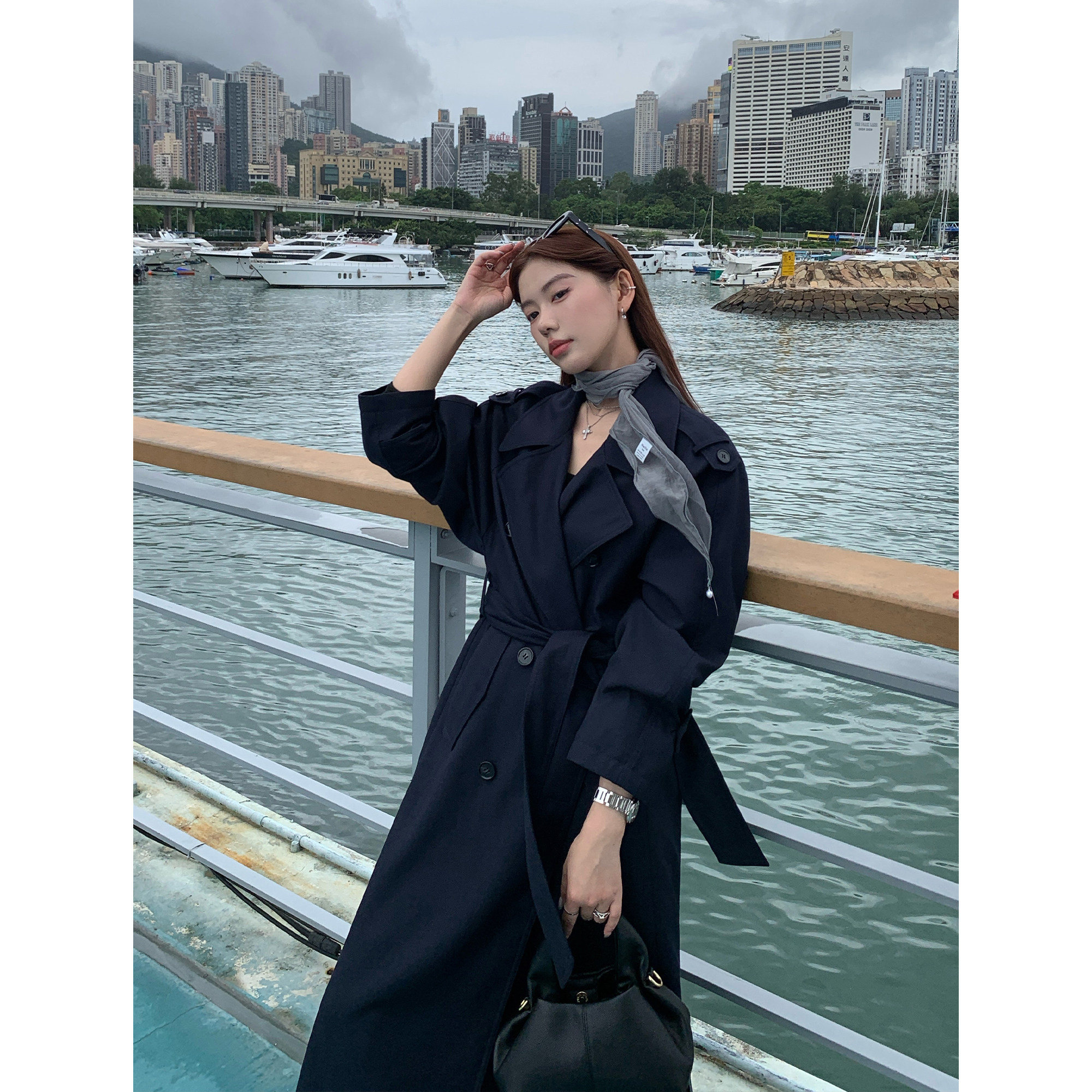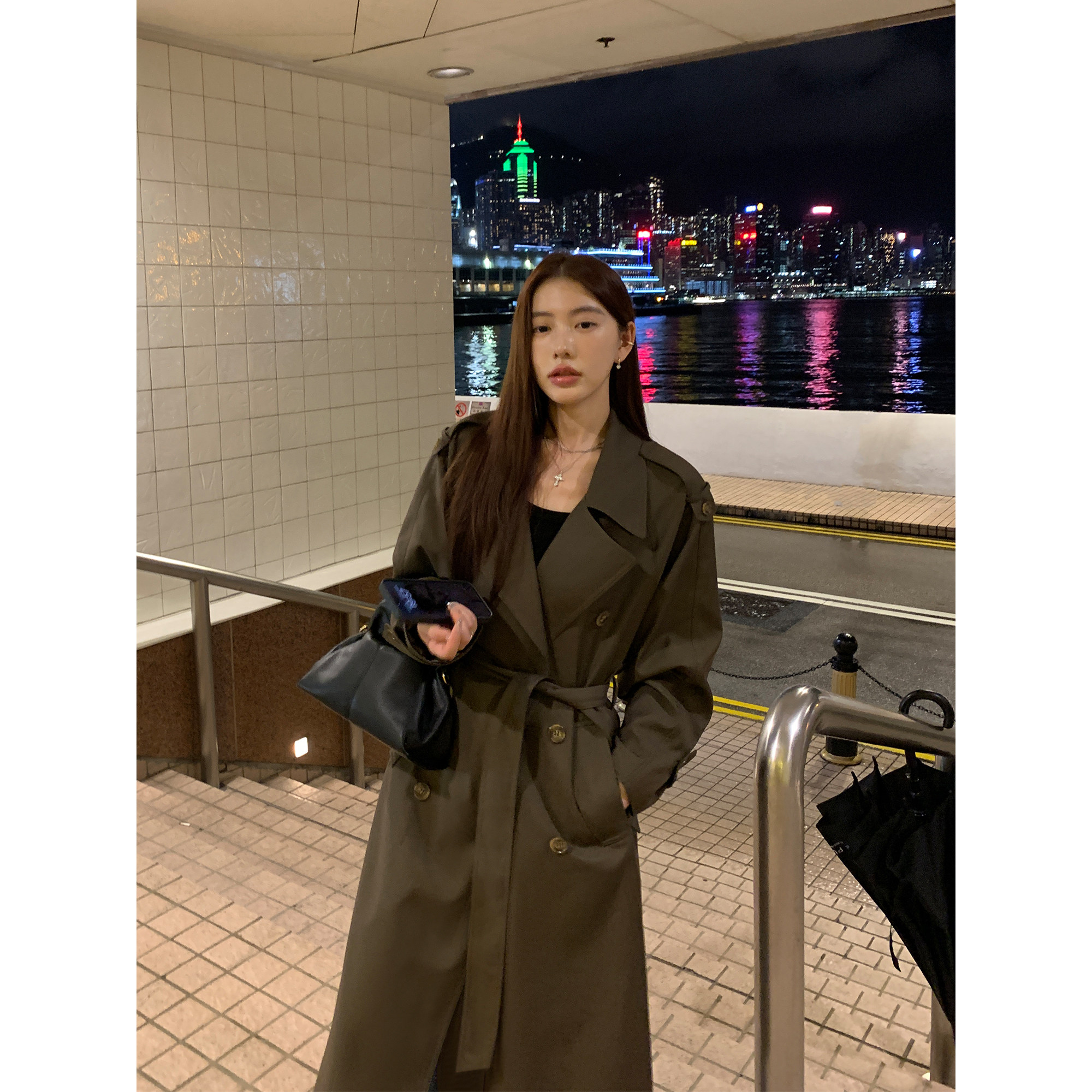 文艺休闲风衣中长款秋冬装韩版新款宽松气质流行呢子外套黑色