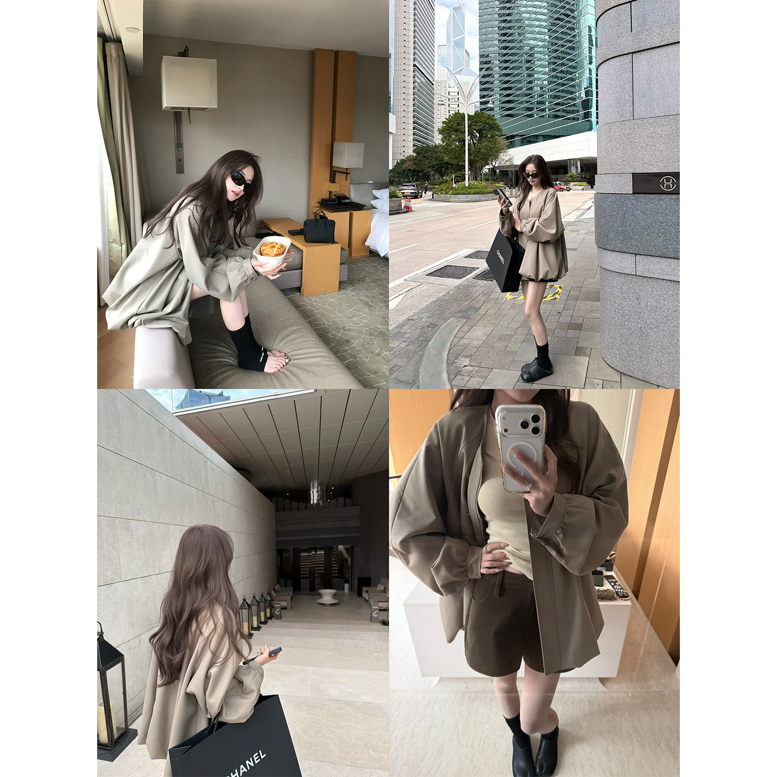淘宝superniniyy 三分甜&微糖花苞A字下摆收褶宽松简约风衣夹克外套女
