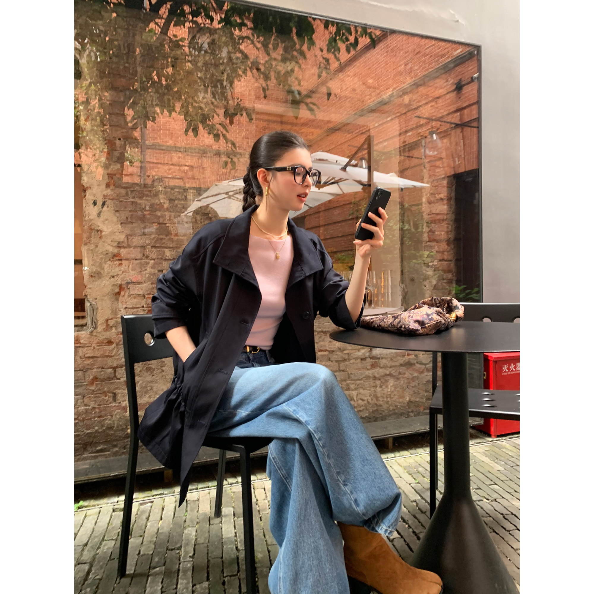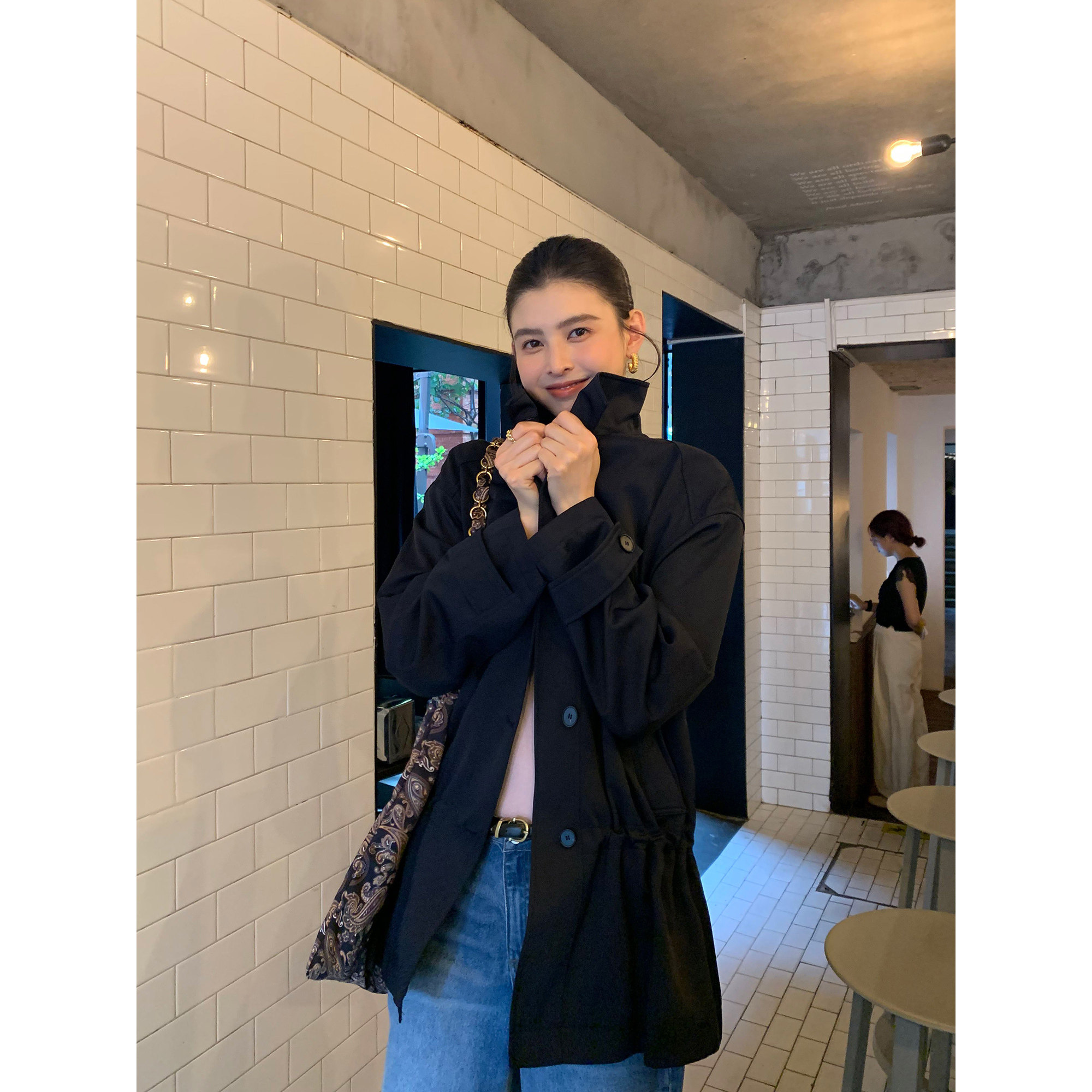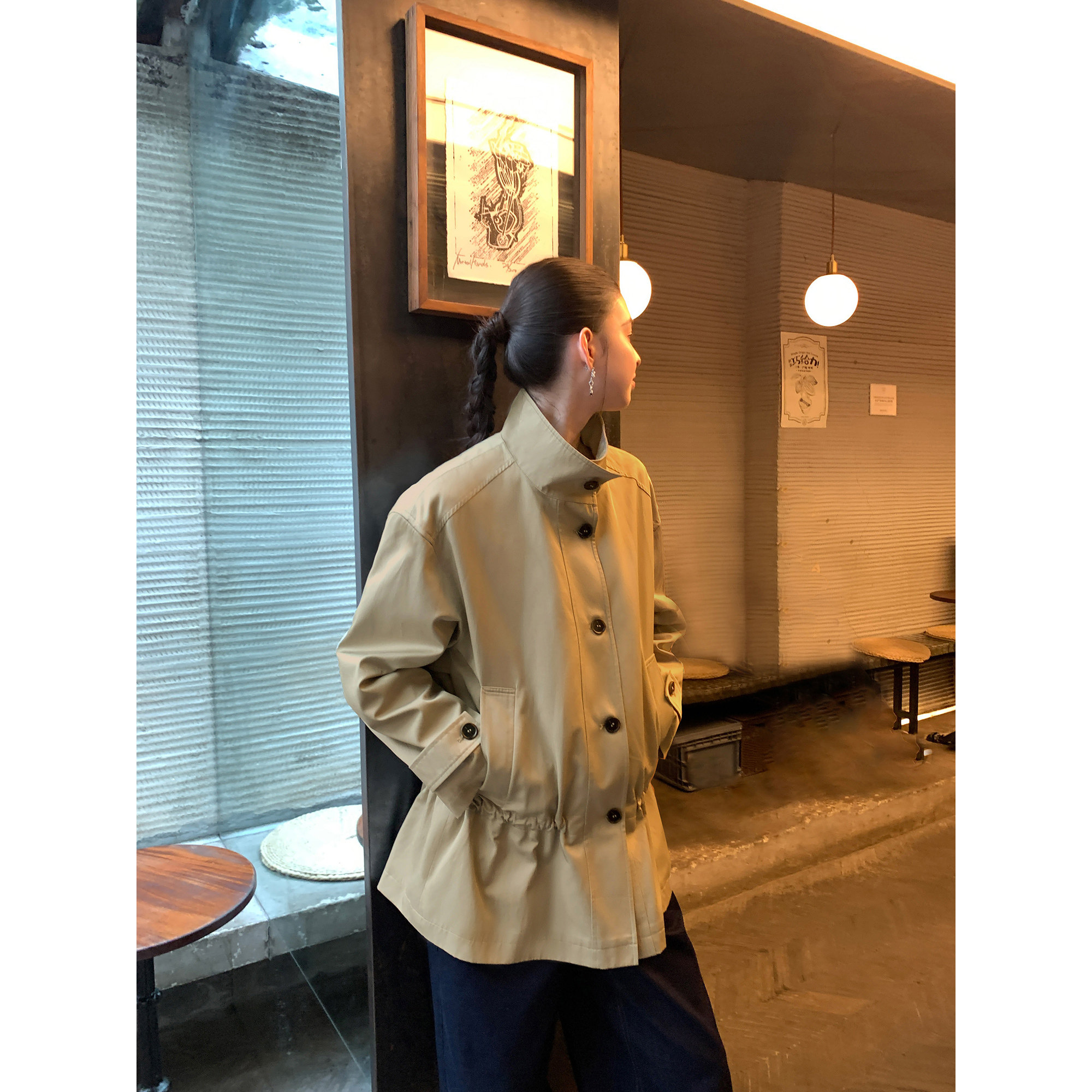 淘宝pusumede 【现货7折】高智气场 立领抽绳收腰风衣女宽松休闲外套
