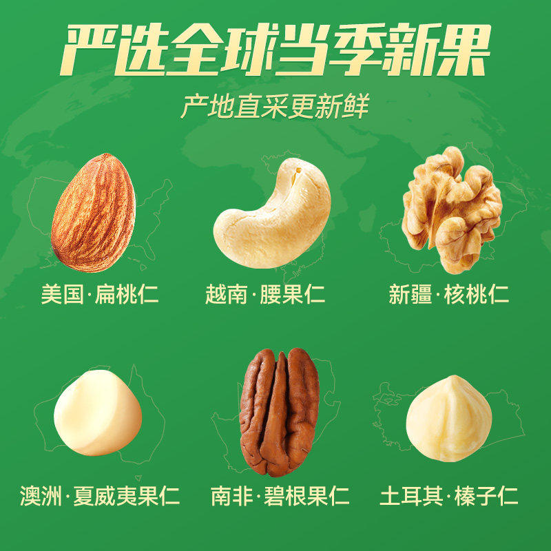 天猫沃隆每日坚果600g纯坚果混合果仁无添加炒货营养健康零食小包装