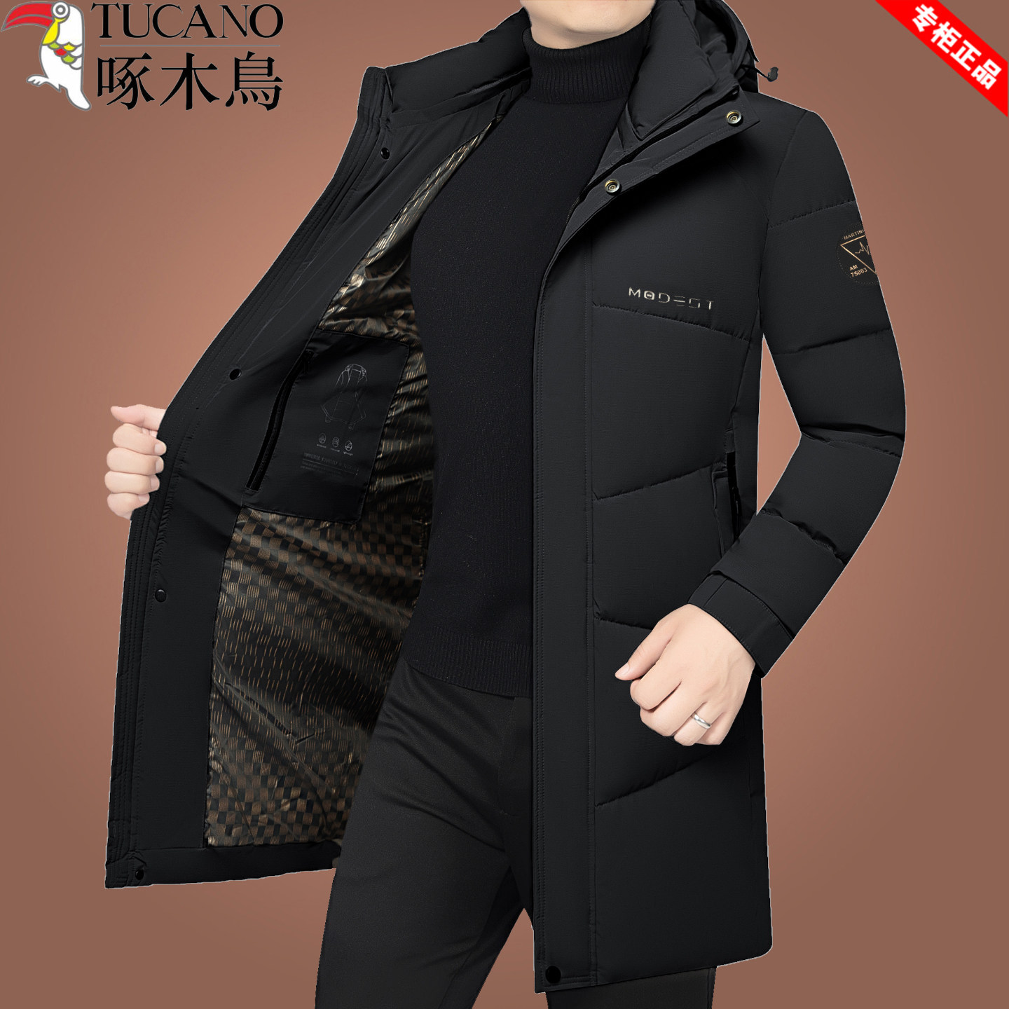 淘宝啄木鸟男士长款羽绒棉衣冬季新款休闲加厚保暖中年棉服外套爸爸装