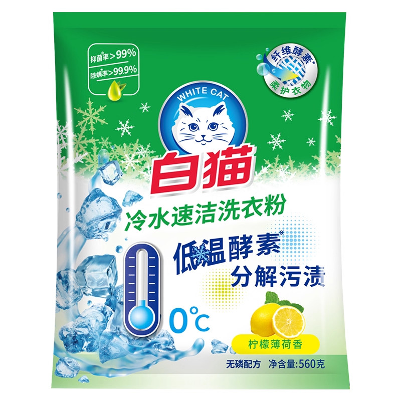 淘宝白猫冷水速洁无磷洗衣粉手洗机洗洗衣粉亮白去渍家庭袋装560g