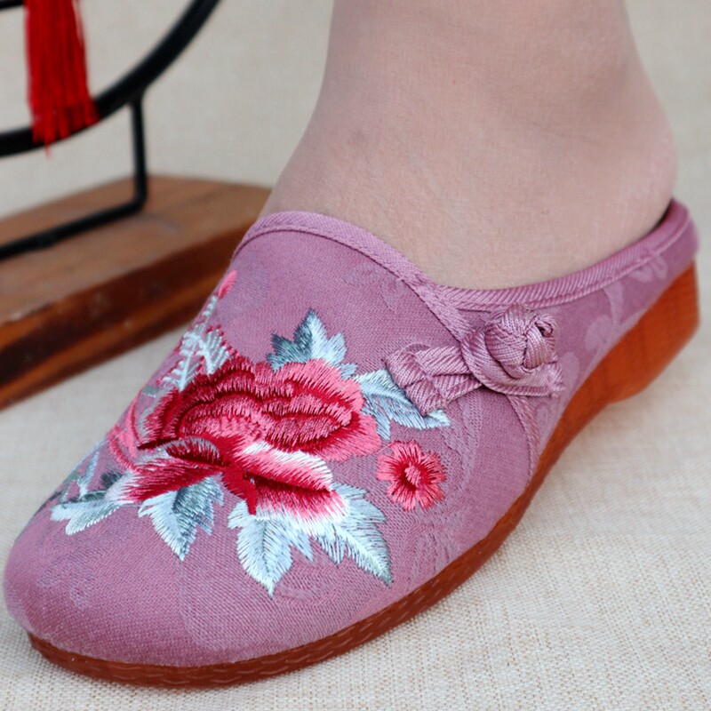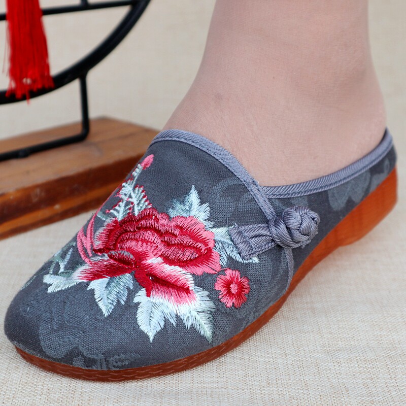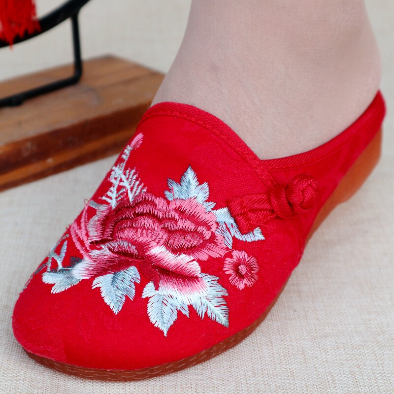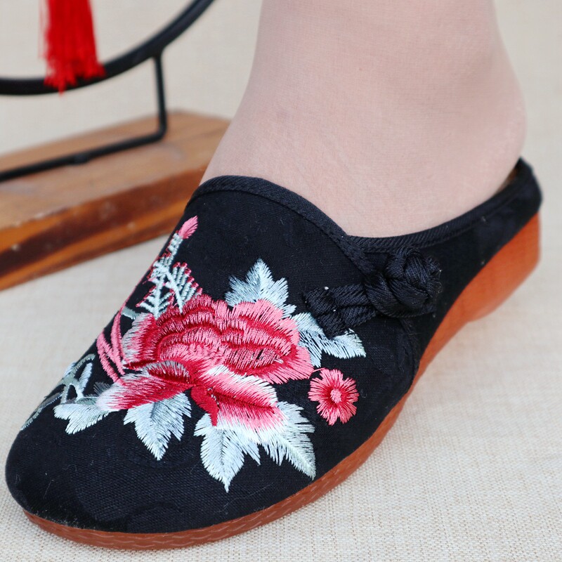 淘宝老北京布鞋女民族风绣花拖鞋牛筋底防滑软底包头外穿休闲妈妈单鞋