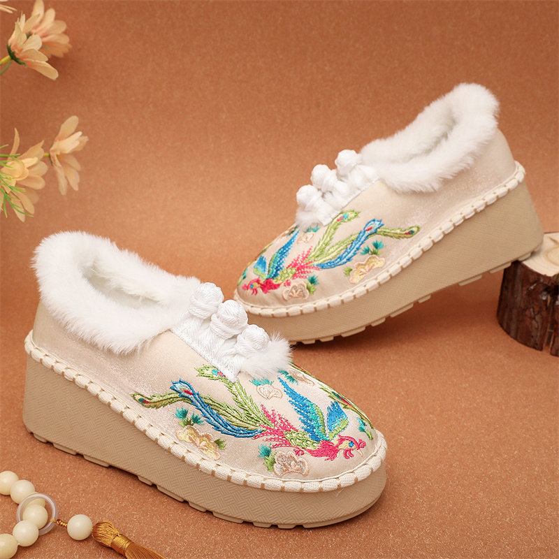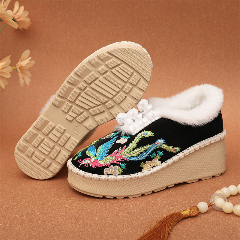 淘宝冬季厚底保暖绣花鞋老北京布鞋民族风加绒古风汉服鞋子松糕女棉鞋