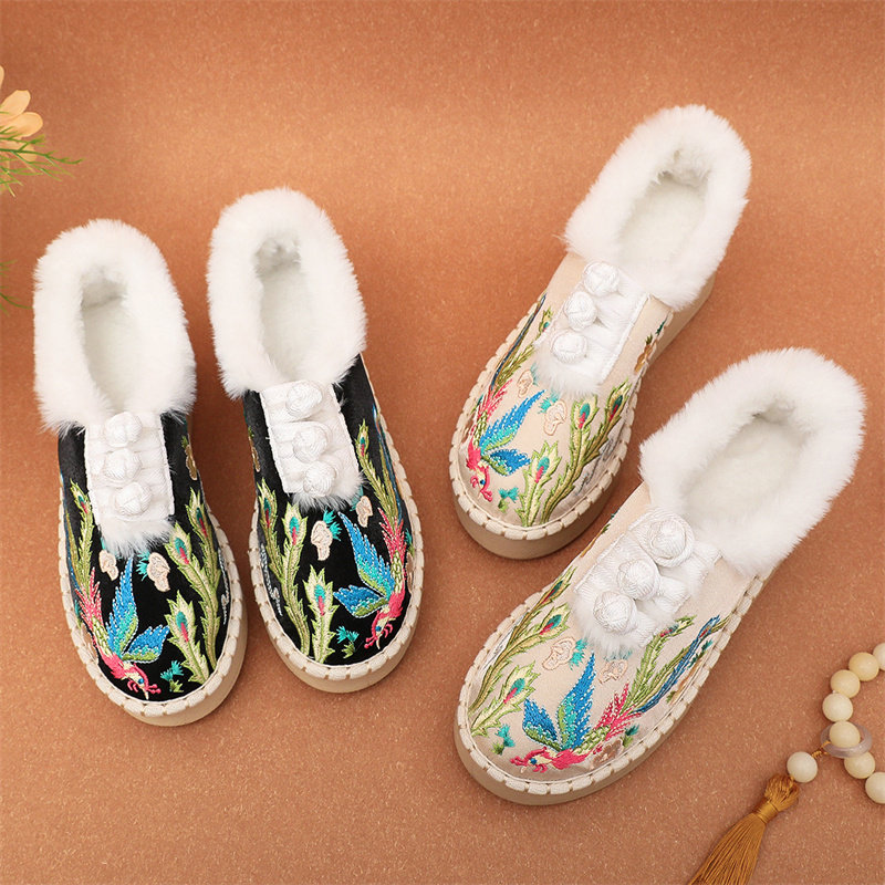 新款中式国风老北京布鞋女冬季加绒复古妈妈鞋保暖绣花汉服棉鞋子