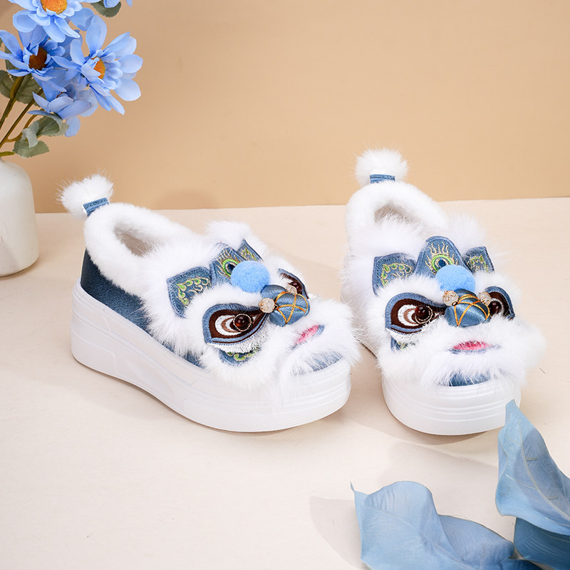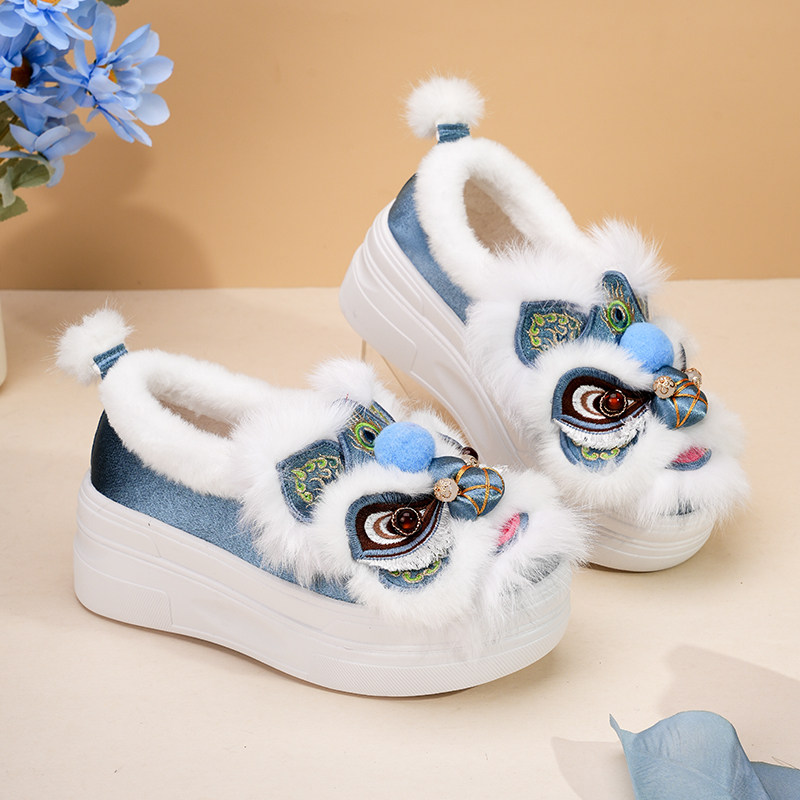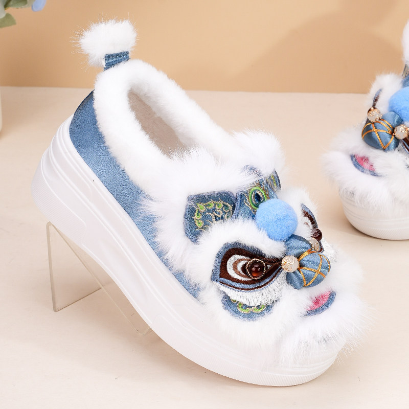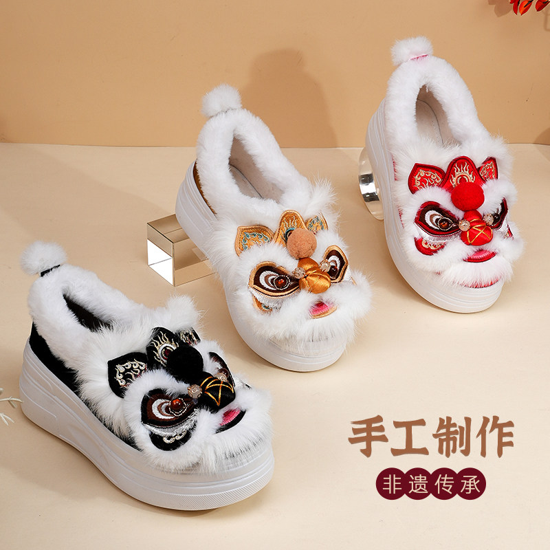 淘宝非遗手工麒麟醒狮鞋女成人冬季厚底绣花鞋国潮汉服布鞋马面裙棉鞋