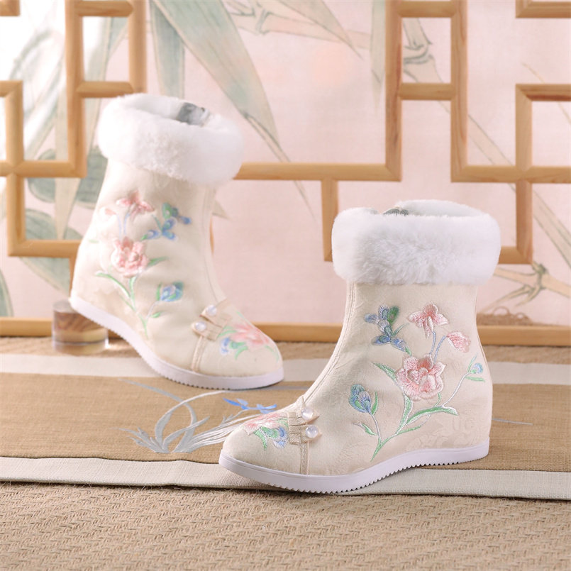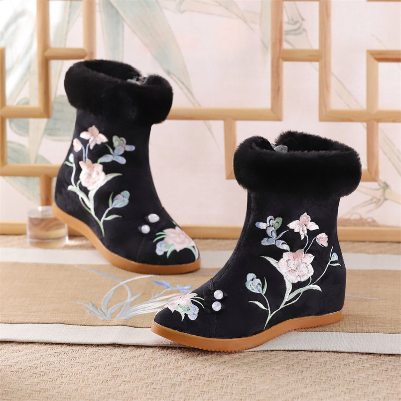 淘宝古风汉服棉靴内增高中式旗袍鞋加绒民族风绣花棉鞋复古国风女短靴