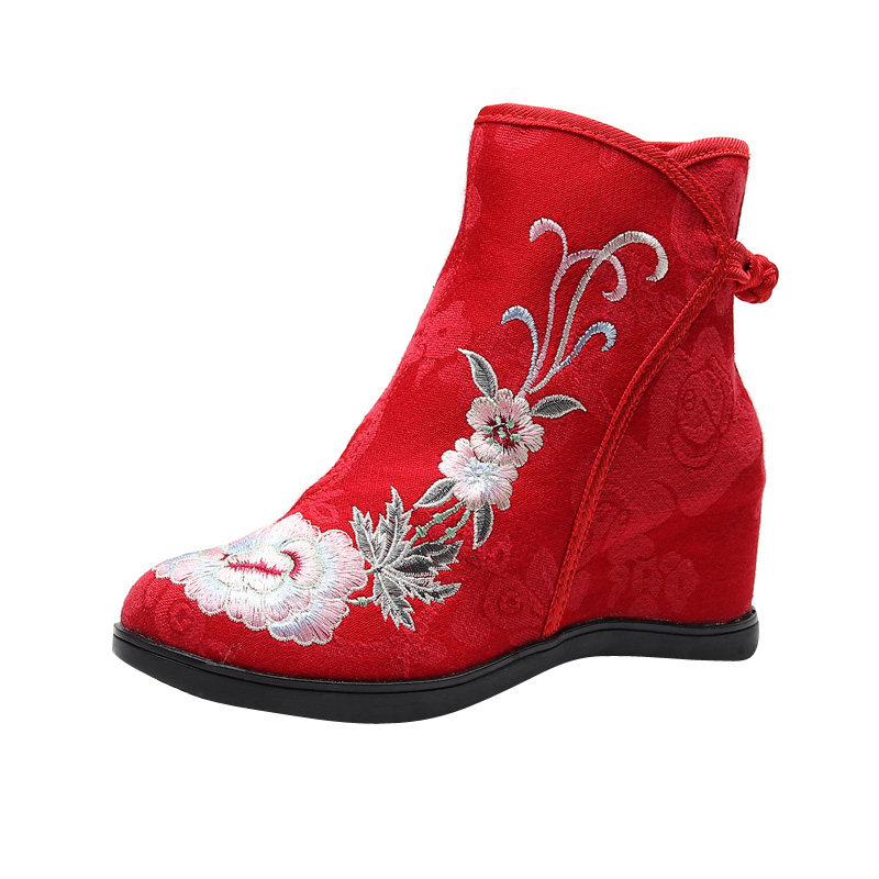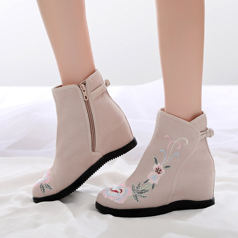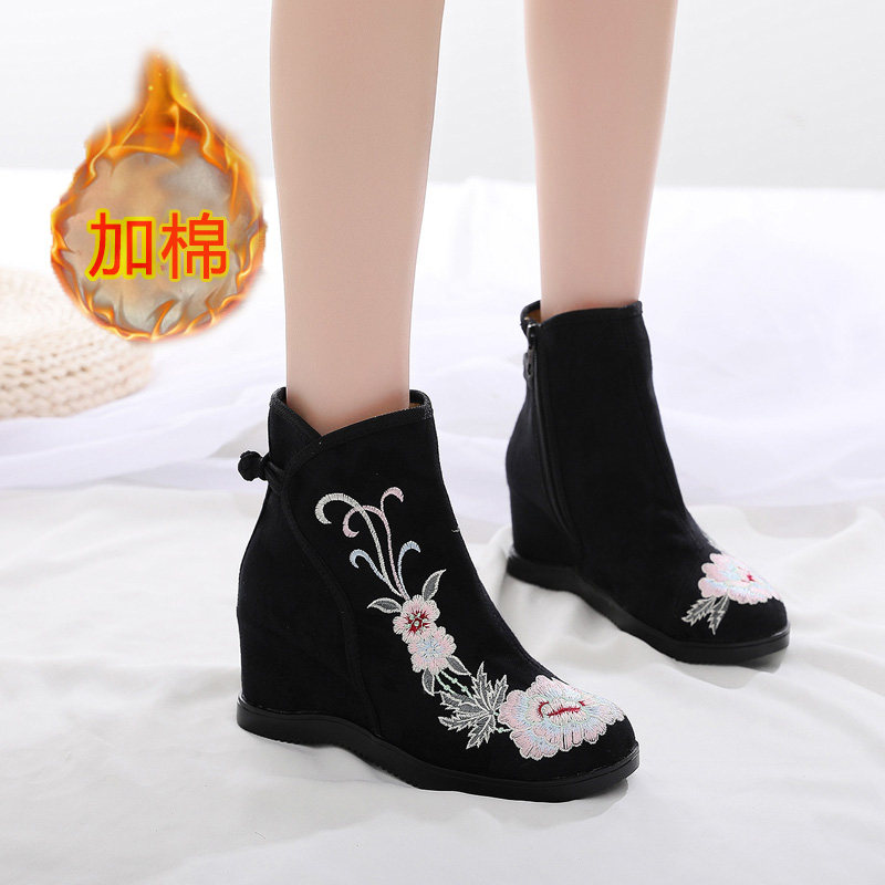 淘宝老北京布鞋女增高民族风绣花靴高帮短筒搭配旗袍马面裙鞋子汉服鞋