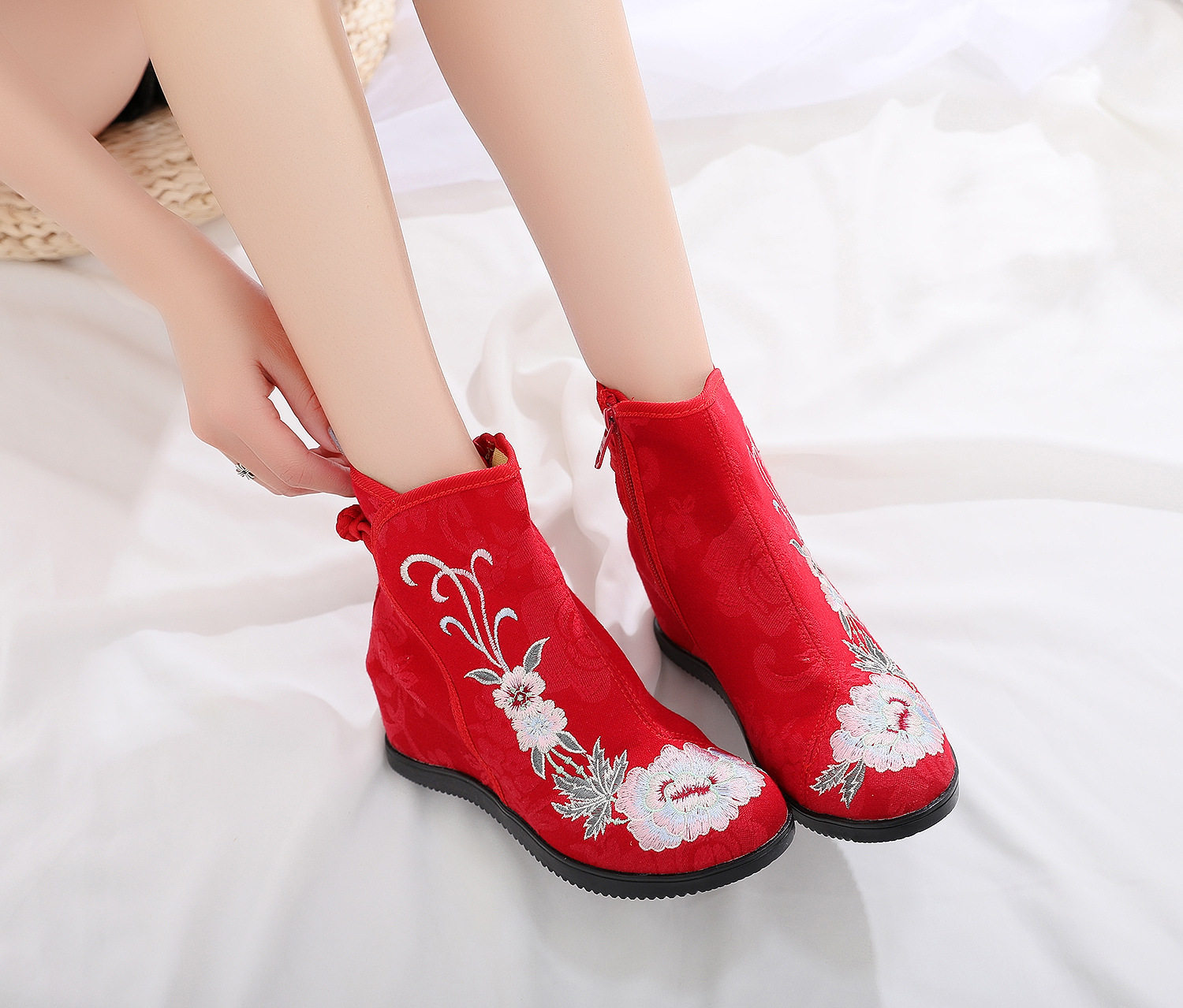 老北京布鞋女增高民族风绣花靴,融合传统工艺与现代审美,专为搭配旗袍、马面裙、汉服等中式服饰设计。采用优质棉布面料,手工刺绣精美图案,寓意吉祥,彰显东方韵味。高帮短筒版型贴合脚踝,内置隐形增高垫,舒适显高不累脚。鞋底柔软防滑,行走稳健,兼顾美观与实用。无论是日常出行、节庆典礼,还是摄影穿搭,都能轻松驾驭,展现温婉典雅的民族风情。这款鞋不仅是鞋履,更是传统文化的时尚表达,让每一位穿着者在步履间传递古典之美。