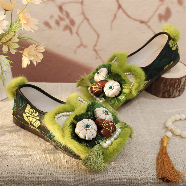淘新款中式国风老北京布鞋女冬季加绒复古妈妈鞋保暖绣花汉服棉鞋子