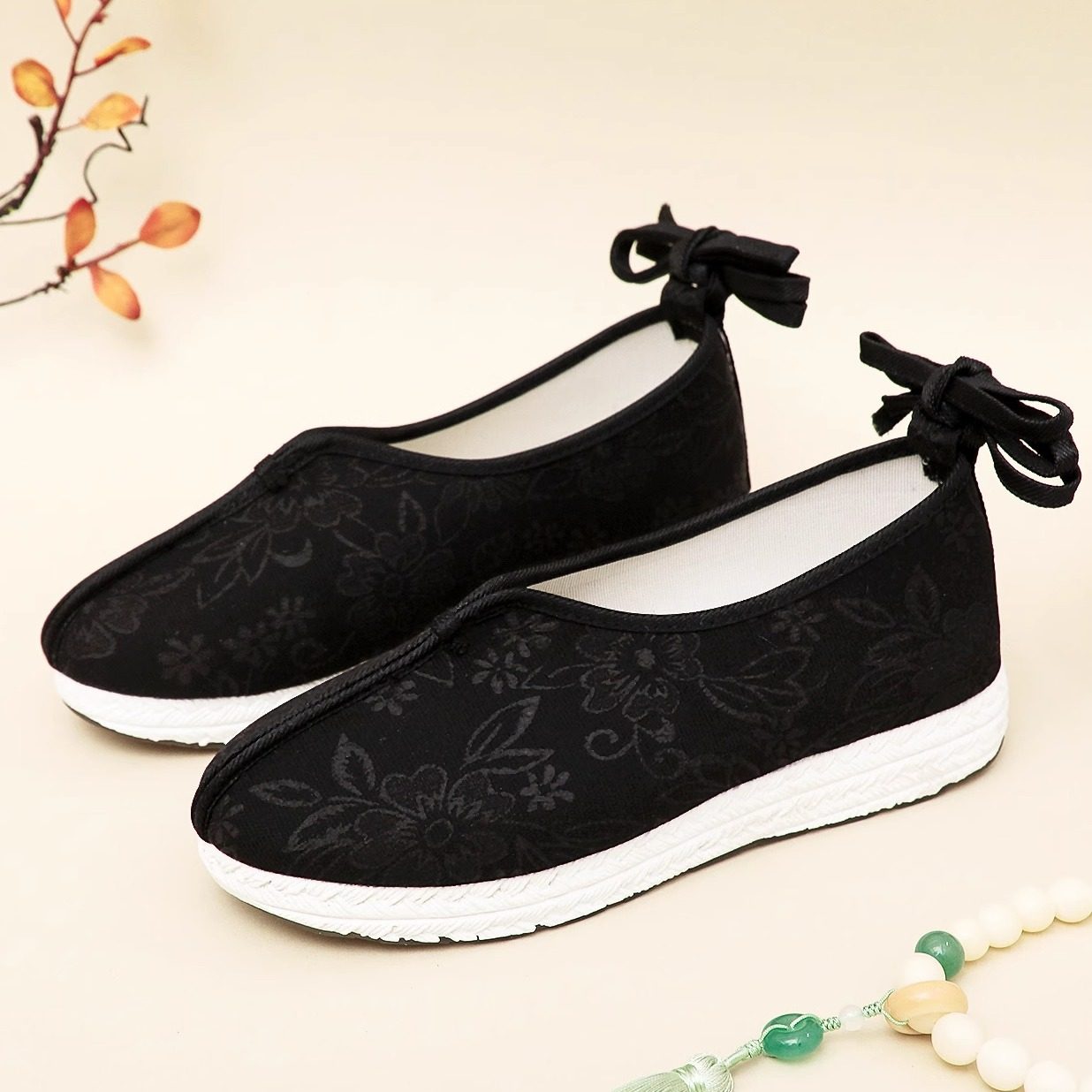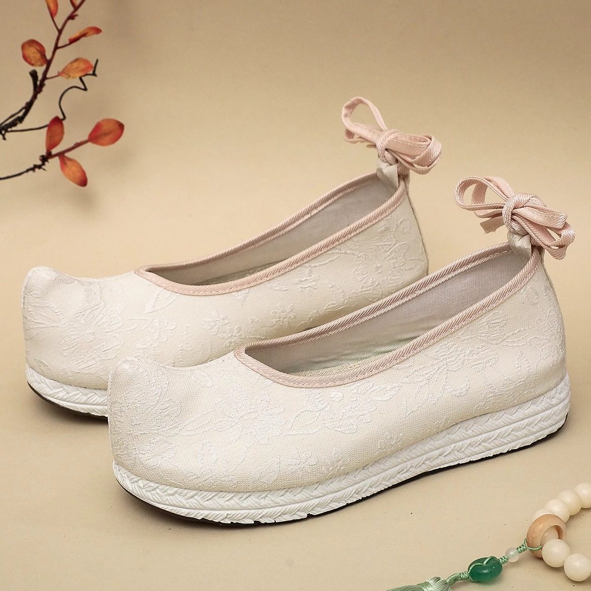 明制男士古风鞋履融合宋明两代经典元素,以翘头设计为标志,兼具儒雅与庄重。鞋面多采用优质绸缎或棉麻材质,配以传统纹样刺绣,彰显古典韵味。男款汉服鞋注重舒适与形制,平底或微跟设计,适合日常穿着或礼仪场合。宋代男鞋风格简约素雅,而明代款式更显挺拔,翘头寓意“步步高升”。部分款式亦适用于古装拍摄、节庆典礼及中式婚礼,男女皆可搭配相应汉服。女款婚鞋常缀以珠玉、云纹,寓意吉祥美满。整体工艺考究,还原古法缝制,是传统文化爱好者不可或缺的雅致之选。