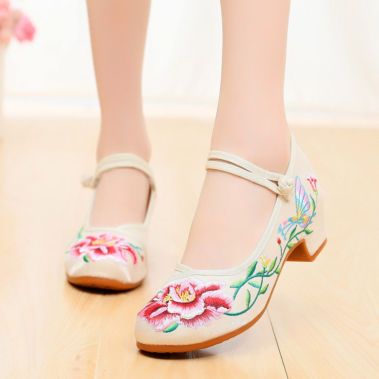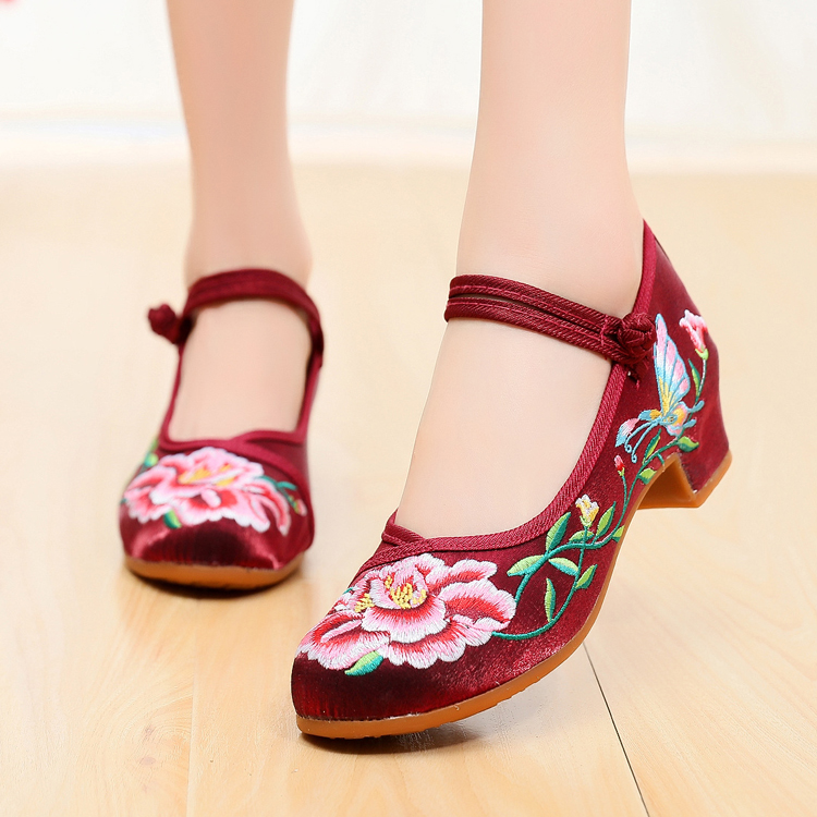 淘宝老北京布鞋女春夏中跟民族风女鞋复古坡跟绣花鞋中国风汉服舞蹈鞋