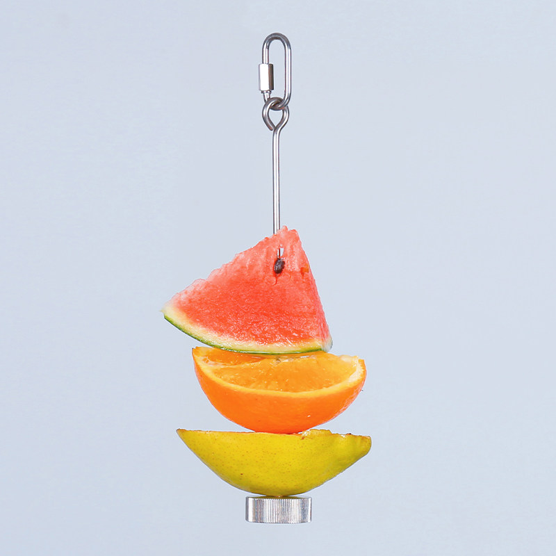 天猫鹦鹉鸟用不锈钢水果叉啃咬玩具水果棒喂食器鸟类喂水果专用夹子