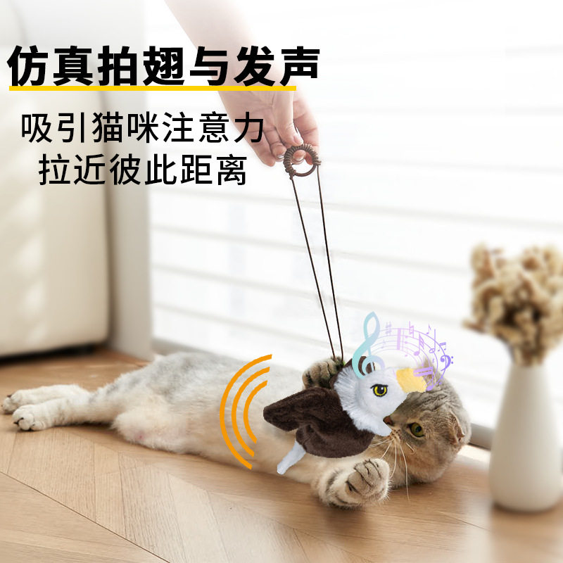 这款爆款拍翅可爱电动宠物毛绒玩具,仿真鸟类设计,萌趣十足,是猫咪解闷的高颜值玩伴。采用柔软亲肤毛绒材质,安全环保,内置智能感应系统,轻触即启动,双翅自动拍动,搭配逼真鸟鸣声效,瞬间激发猫咪狩猎天性。小巧轻盈,可悬挂或手持互动,让爱猫尽情扑咬、追逐,有效缓解孤独与焦虑。无需电池更换,USB充电便捷耐用。不仅是猫咪的快乐源泉,更是家居装饰的治愈系萌物。无论是幼猫还是成猫,都能在玩耍中释放精力,享受趣味时光。送礼自用两相宜,让宠物生活更精彩!