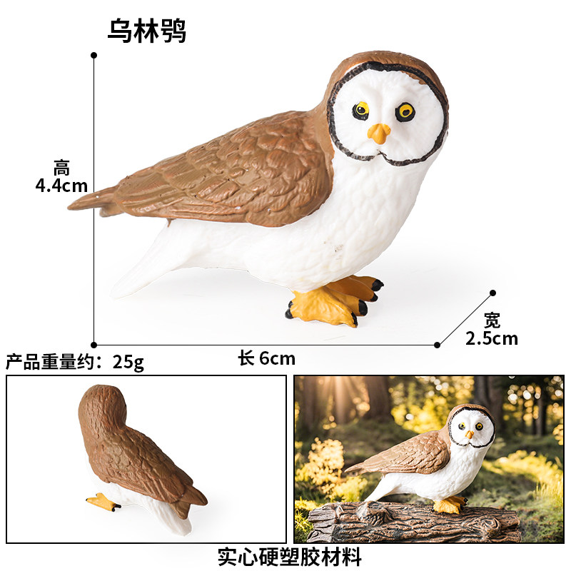 这款实心仿真乌林鸮(猴面鹰)模型是一款专为儿童设计的认知教育玩具,采用环保安全材质精工制作,高度还原真实猫头鹰的羽毛纹理、面部特征与神态细节,触感细腻,坚固耐用。其逼真的造型有助于孩子认识自然界中的猛禽鸟类,激发对野生动物的兴趣与爱护意识。适合用于亲子互动、自然课堂或家居摆件,兼具趣味性与教育意义。无小零件设计,安全放心,是培养孩子观察力、认知能力和审美情趣的理想选择,让小朋友在玩乐中亲近自然,探索鸟类世界的奥秘。