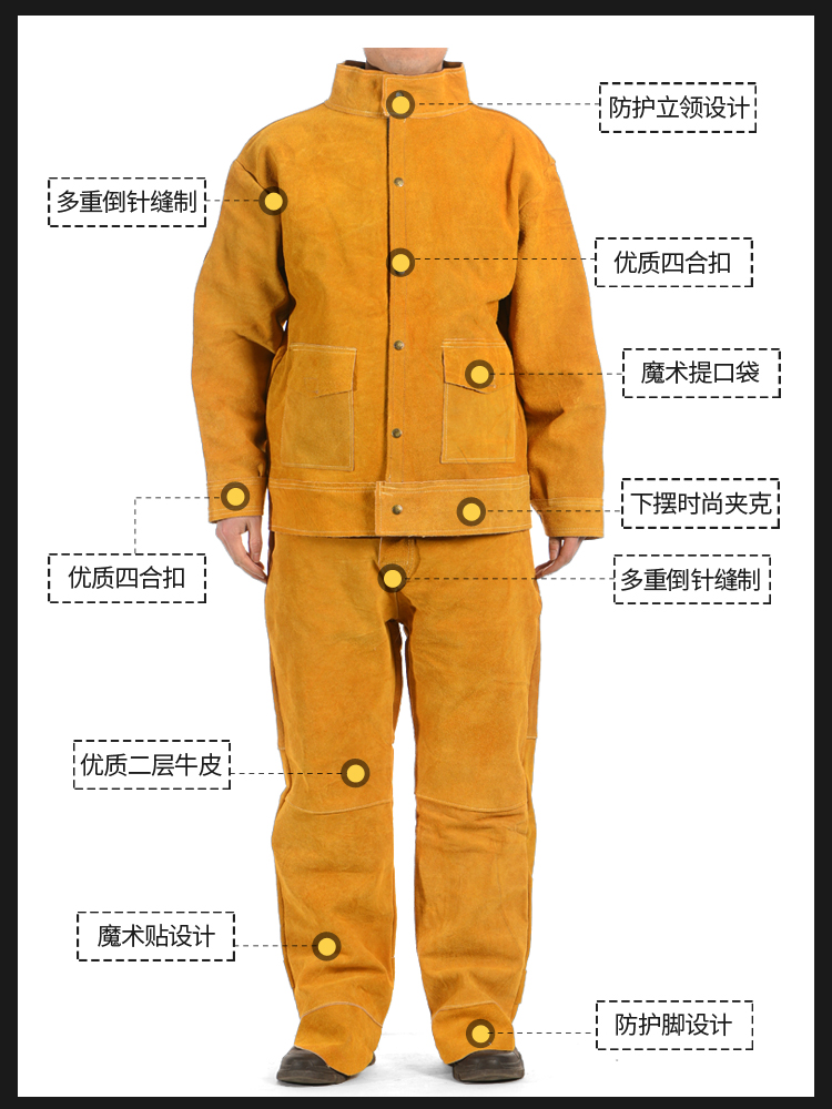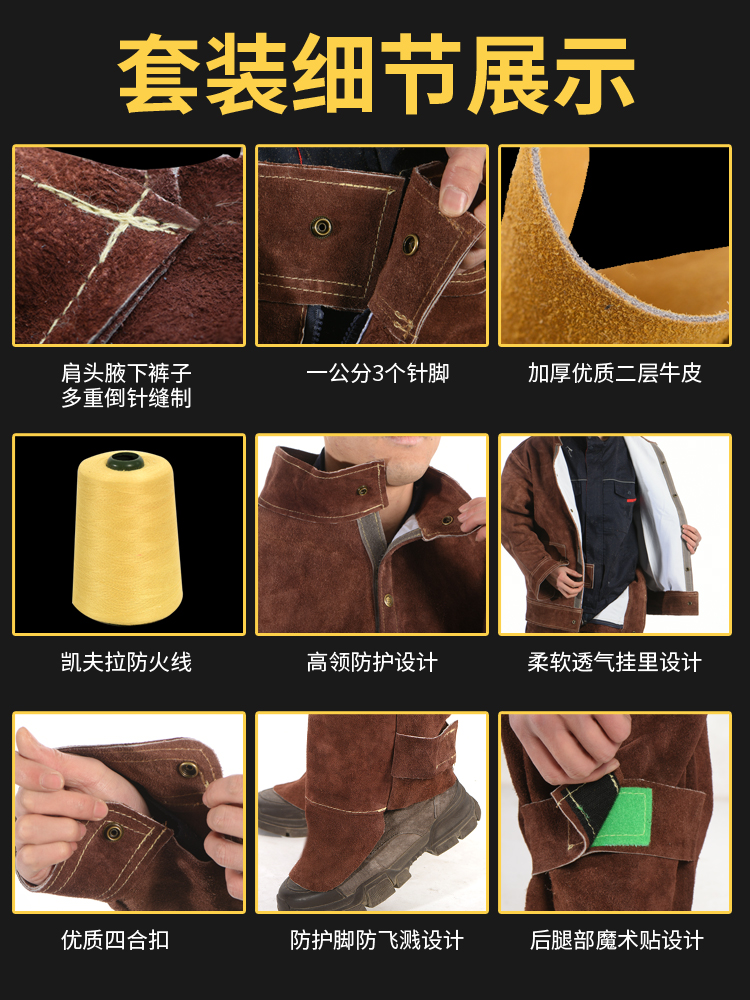 这款牛皮电焊防护服是专为焊工而设计的优质工作服。它具有耐磨、隔热、防电焊辐射的特性,有效保护焊工在工作时免受伤害。这款防护服采用高质量的牛皮材料制成,具有良好的耐用性和防护性能。其设计包括带袖皮围裙,可提供全面的覆盖和保护。此外,这款工作服还具有优异的防电焊辐射功能,有效减少辐射对身体的潜在影响。带包邮服务,方便快捷。总之,这款防护服是焊工进行焊接工作的理想选择,确保工作安全,值得购买。