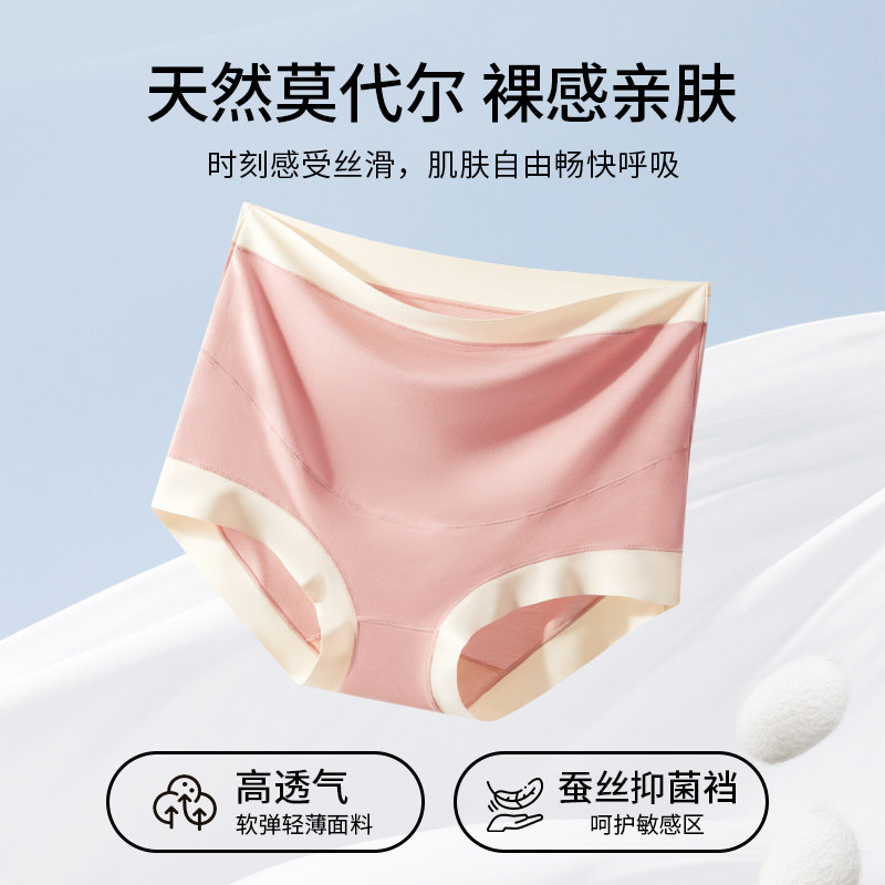 天英氏孕妇莫代尔内裤春季新款桑蚕丝抑菌加长底裆透气高腰托腹大码