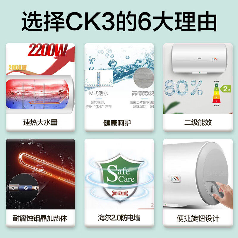淘宝海尔电热水器家用40/50/60/80L100升洗澡卫生间大容量节能leader